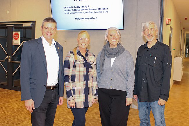 So konnte Dir. Wilfried Lercher am „Tag der offenen Tür“ als besondere Gäste deren Direktorin Dr. Tinell L. Priddy und ihre Vizedirektorin Jennifer H. Chang begrüßen. Die Schule mit Technikschwerpunkt hat 2500 Schülerinnen und Schüler im Alter von 14 bis 18 Jahren und liegt 40 Kilometer westlich von Washington DC.
