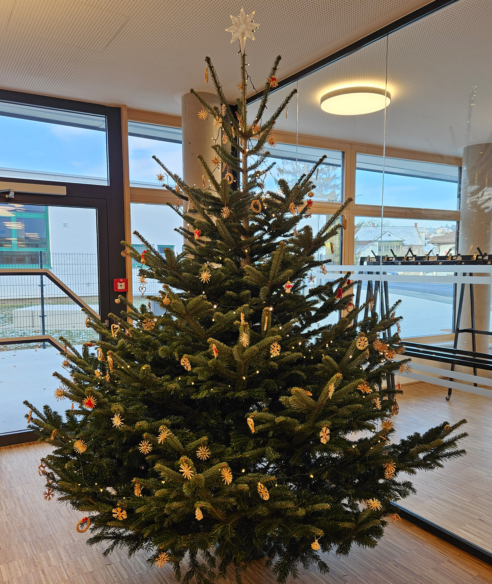 Mit Beginn der Adventzeit wird traditionell in der HTL Pinkafeld ein festlich geschmückter Christbaum aufgestellt. Heuer steht der ansehnliche Baum aus dem Günser Gebirge erstmals im neuen Eingangsfoyer. Er wurde von den Fördervereinen zur Verfügung gestellt und soll in den nächsten Wochen alle Schülerinnen und Schüler, alle Lehrenden und Gäste beim Betreten der HTL auf die besondere Zeit vor Weihnachten einstimmen.