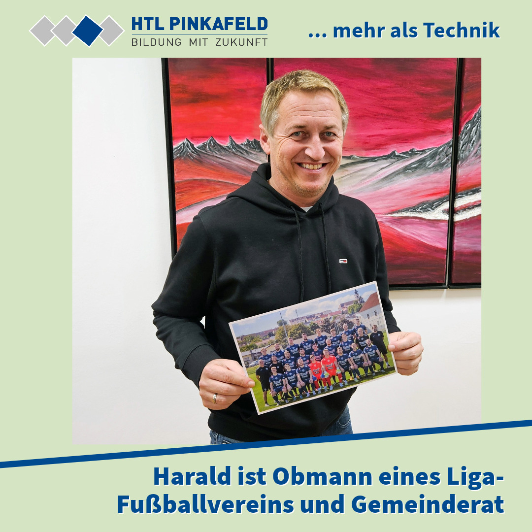 Harald ist Professor für Mathematik und Geografie an der HTL Pinkafeld und in seiner Freizeit seit 17 Jahren Obmann eines traditionsreichen burgenländischen Liga-Fußballvereins. Darüber hinaus ist er seit zwölf Jahren Gemeinderat in seiner Heimatgemeinde.