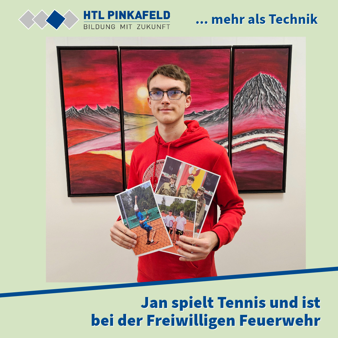 Jan, 17, ist Gebäudetechnik-Schüler an der HTL Pinkafeld und spielt für seinen Tennisverein in der Meisterschaft. Daneben ist er bei der Freiwilligen Feuerwehr seiner Heimatgemeinde aktiv.