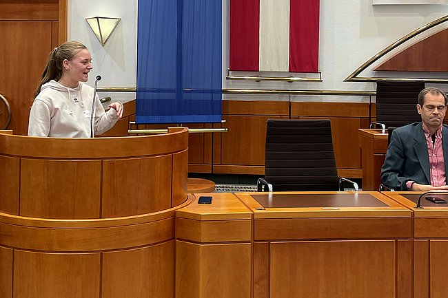 Die Themen Bildung, öffentlicher Verkehr, Pflege und Ausbildung konnten im Landtag von Schülerinnen und Schülern auf dem Podium zur Sprache gebracht werden und gemeinsam mit den Abgeordneten diskutiert werden. Damit wird Jugendlichen die Möglichkeit geboten, ein Interesse für Politik zu entwickeln und diese durch ihre Wortmeldungen mitzugestalten.