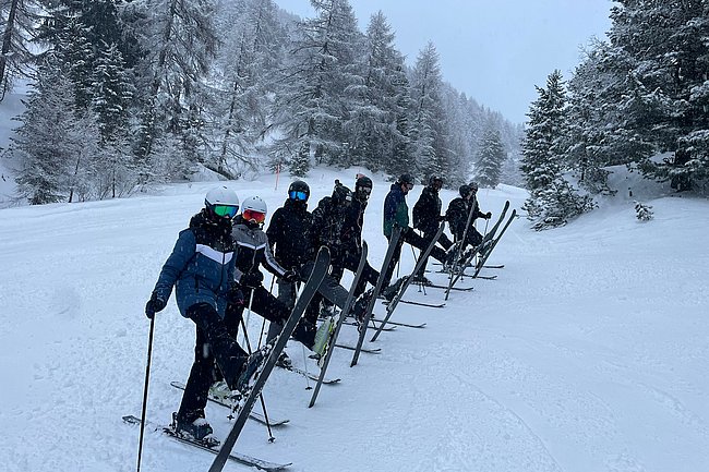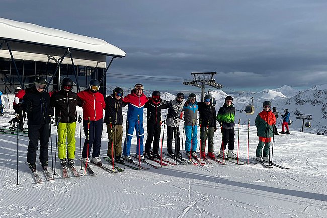 Abseits der Pisten wurden u.a. die Pistenregeln und Erste-Hilfe-Maßnahmen besprochen. Verschiedene Turniere, Volleyball und das gemeinsame Schauen der Champions League Spiele rundeten das abendliche Programm der Wintersportwoche ab.