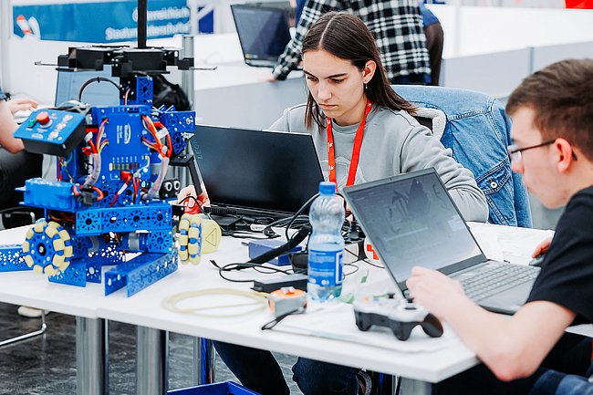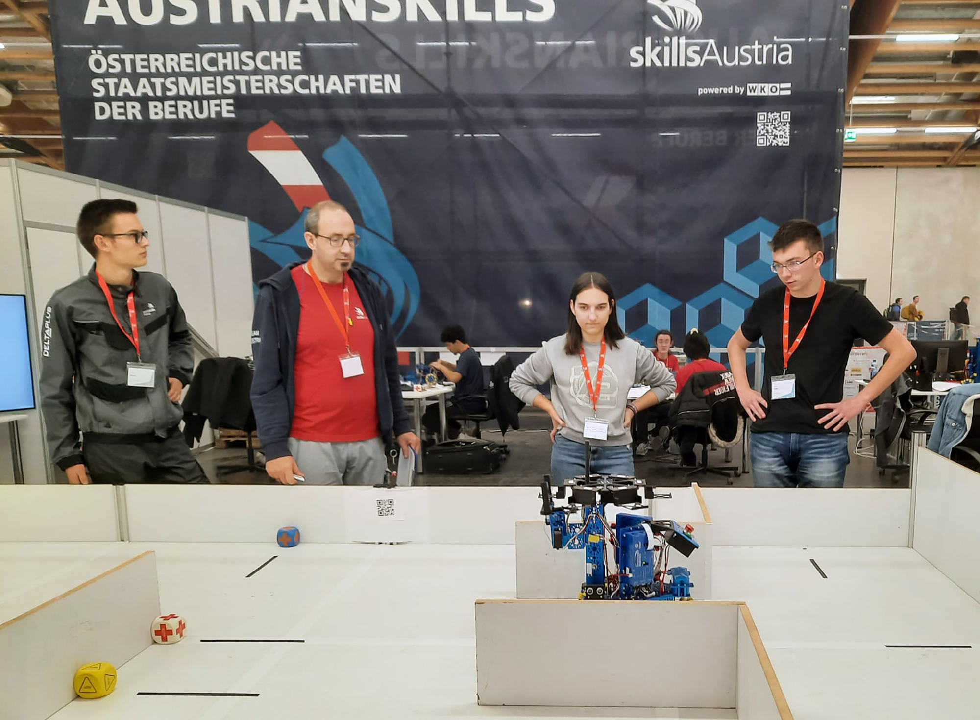 Von 23. bis 26. November fanden im Messezentrum Salzburg die diesjährigen AustrianSkills, die Österreichischen Staatsmeisterschaften der Berufe, statt. Rund 300 Jungfachkräfte gingen in 29 Bewerben an den Start. Die Elektronik-Schüler Emily Wachter und Lukas Thier vertraten die HTL Pinkafeld im Teamberuf „Mobile Robotics“, vorbereitet und begleitet wurden sie von Prof. Dietmar Scheiblhofer.