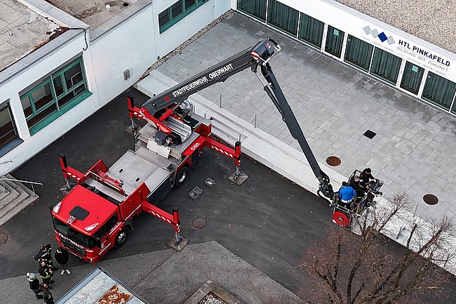 Mitte Jänner fand der Feuerwehrtag der Gebäudetechnik-Abteilung statt.Prof. Lukas Tkauz und Prof. Michael Krutzler, beide selbst aktive Feuerwehrmänner, hatten für die teilweise von weit her angereisten Kids ein interessantes Programm vorbereitet. Neben dem Besuch im Feuerwehrhaus der Stadtfeuerwehr Pinkafeld, wo neben umfangreichen Erläuterungen auch ein kleiner Wettbewerb stattfand, war die Teleskopmastbühne der Stadtfeuerwehr Oberwart eine besondere Attraktion. Damit konnte aus 30 Metern ein guter Überblick über den HTL-Campus und die Stadtgemeinde Pinkafeld gewonnen werden.