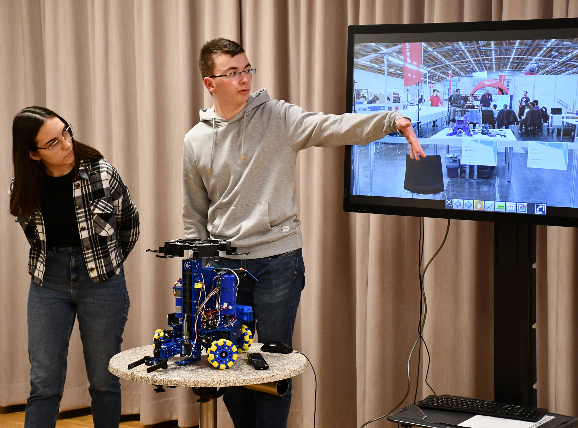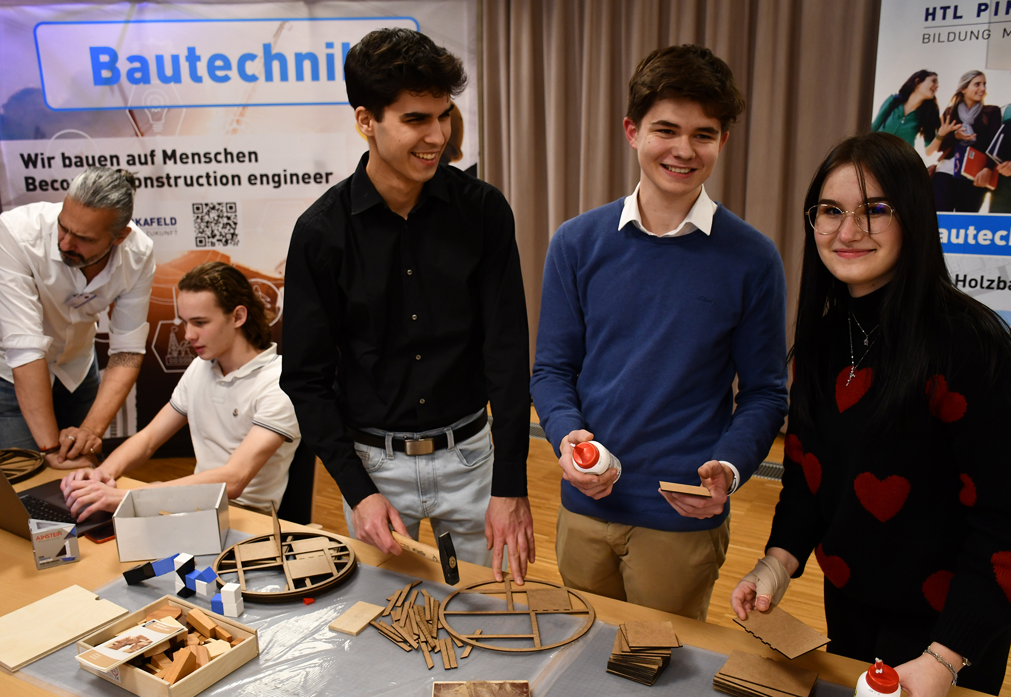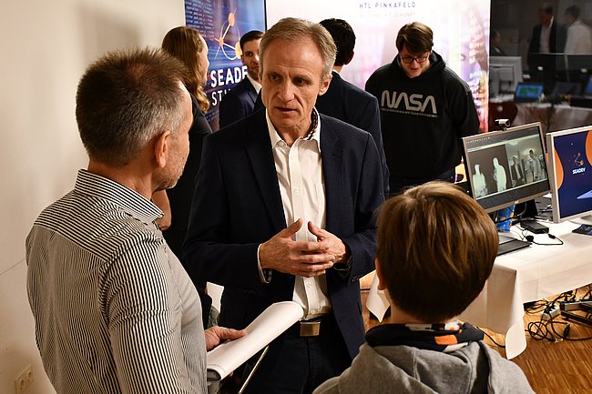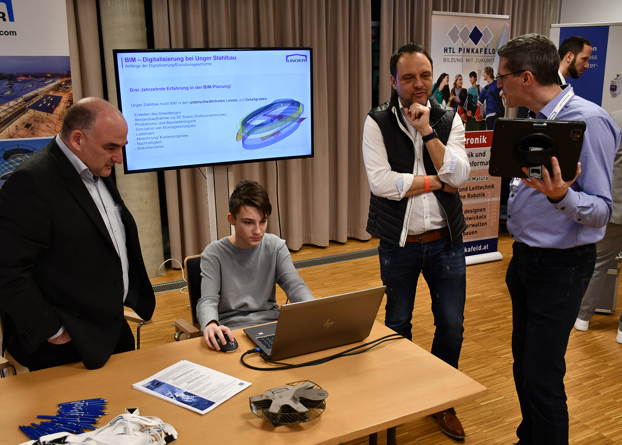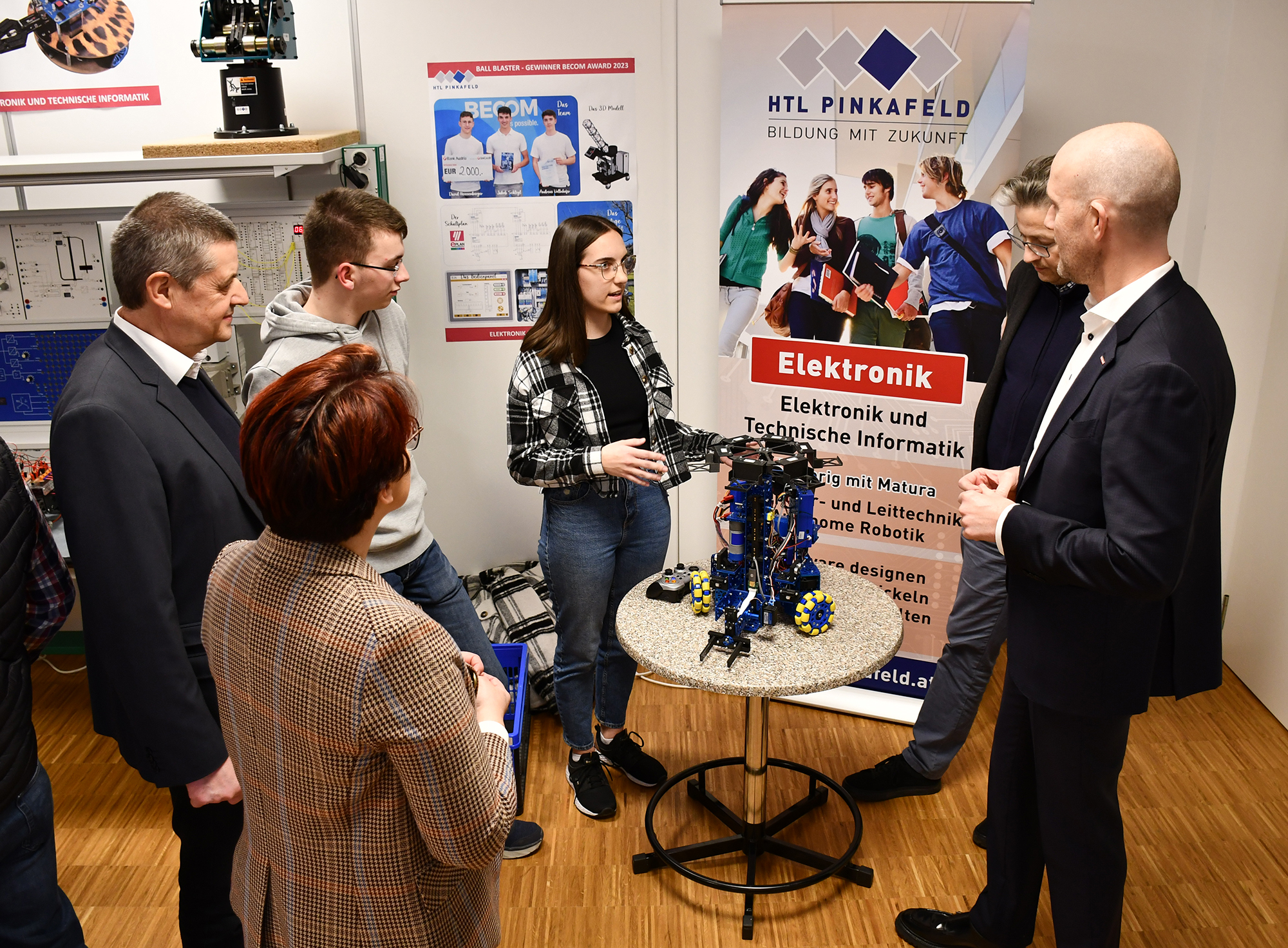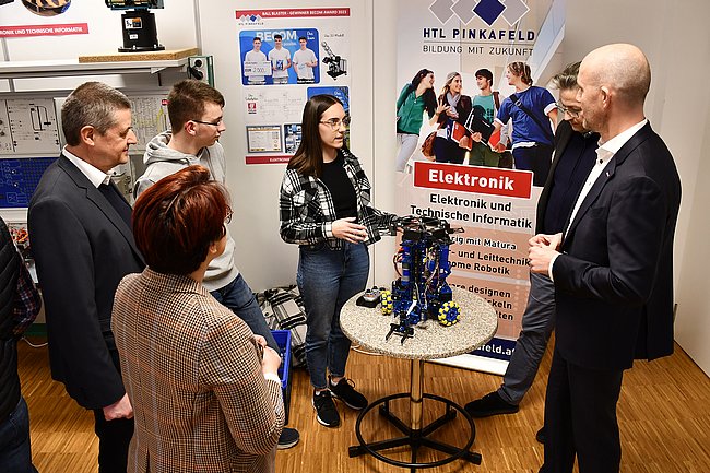 In der HTL Pinkafeld stellten Schüler*innen und Lehrer*innen sowie die Firmen Unger Stahlbau, Lenze, Herz und Seadev Studios die sieben Fachrichtungen Bautechnik, Elektronik, Gebäudetechnik, Informatik, Informationstechnologie, Maschinenbau und Mechatronik vor. So präsentierten u.a. die Vizestaatsmeister „Mobile Robotics“ bei den Österreichischen Staatsmeisterschaften der Berufe Emily Wachter und Lukas Thier ihre ausgezeichnete Arbeit.