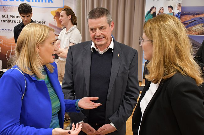 Auch Bildungslandesrätin Daniela Winkler und die Schulqualitätsmanager Bernd Hochwarter und Daniel Baumann waren gerne der Einladung gefolgt. WK-Vizepräsident Martin Horvath, WK-Regionalstellenobfrau Tanja Stöckl und WK-Regionalstellenleiter Christoph Winkler machten sich gemeinsam mit der Präsidentin der IV Burgenland Adelheid Adelwöhrer und IV Burgenland-Geschäftsführerin Aniko Benkö sowie Pinkafelds Vize-Bgm. Carina Laschober-Luif und weiteren Ehrengästen ein Bild von der hohen Ausbildungsqualität und der großen Vielfalt der drei Pinkafelder Schulen.