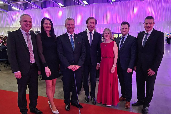 Nach dem Einzug, den die Klassenvorstände Prof. Harald Schneller (5AHGT), Prof. Bernhard Bruckner (5BHGT) und Ing. Horst Reicher (4AFMA) ankündigten, begrüßten Abteilungsvorstand Adalbert Schönbacher und Dir. Wilfried Lercher die Ballgäste. Neben Pinkafelds Bürgermeister 3.LT-Präs. Kurt Maczek, Vize-Bgm. Adrian Kubat und Stadträtin Sigrid Tallian war auch der Dritte Präsident des Nationalrates Norbert Hofer, bekannterweise selbst Pinkafelder, ins MEZO Oberwart gekommen.