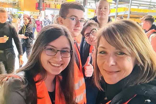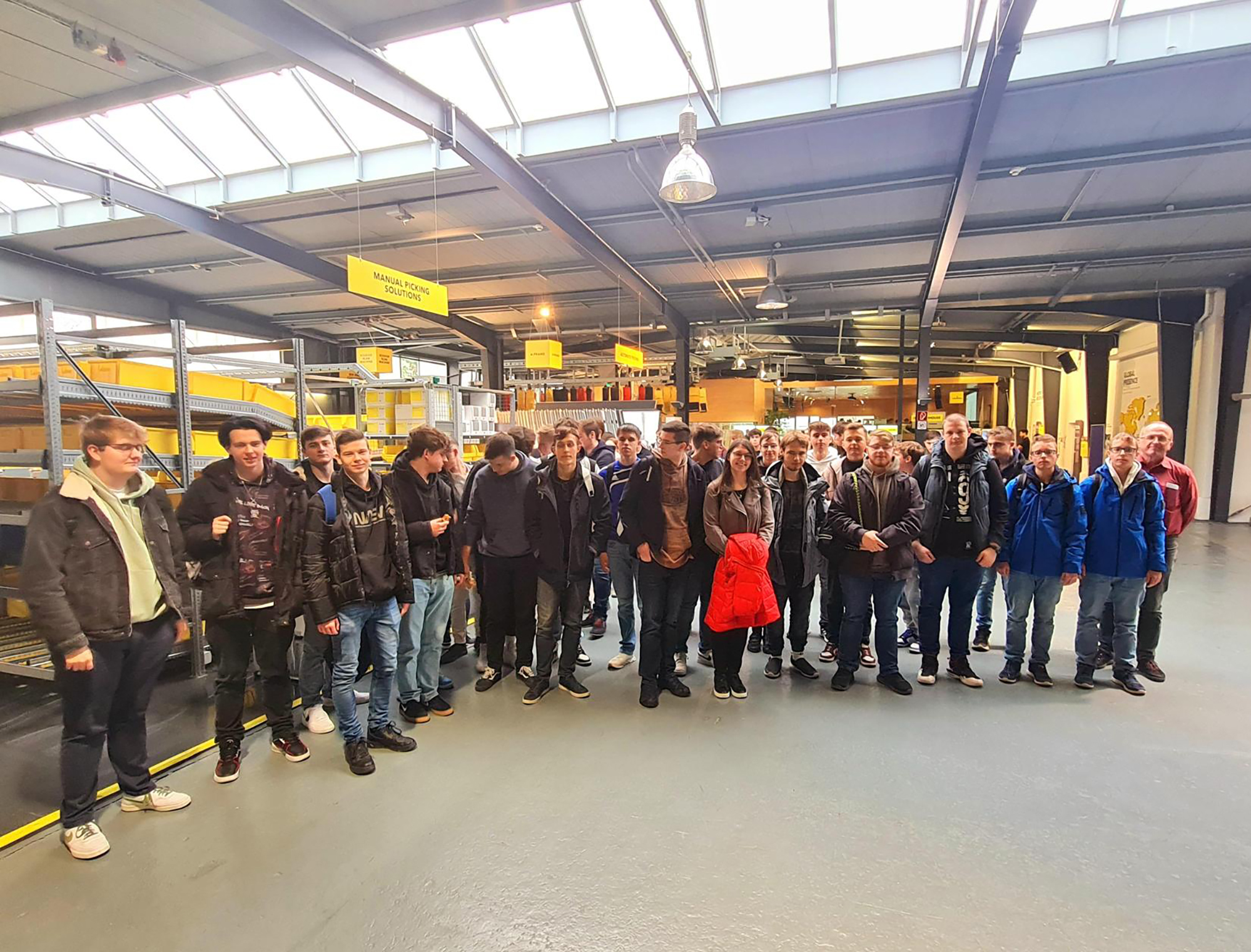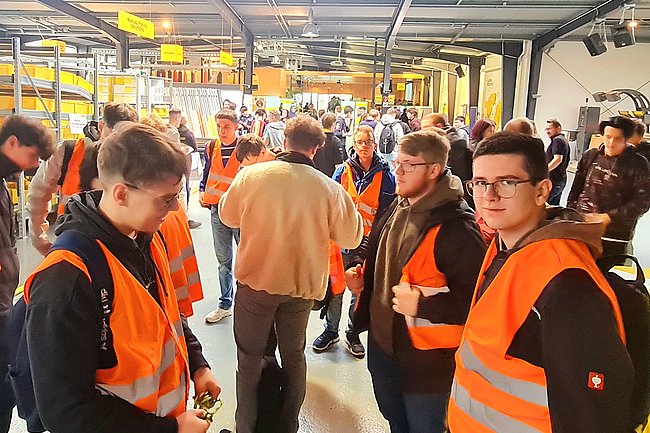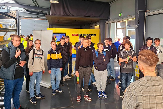 Nach einer kurzen Vorstellung des Unternehmens und der Fachbereiche, wurden die Schülerinnen und Schüler in Gruppen eingeteilt, um mehrere Stationen im Unternehmen zu besuchen. Neben einer Werksführung gab es zahlreiche Informationsstände und eine Anlagenvorführung. Hier konnten sich die Schülerinnen und Schüler überzeugen, wie viel Programmier-Knowhow in einem voll automatisierten Lager steckt.
