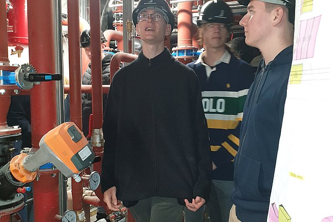 Bemerkenswert war die Vorstellung der Sprinkleranlage, die einen wichtigen Beitrag zur Brandsicherheit in den Wohntürmen leistet. Die Schüler*innen erhielten einen Einblick in die ausgeklügelte Technologie, die im Falle eines Brandes automatisch aktiviert wird, um eine schnelle und effektive Brandbekämpfung zu gewährleisten.