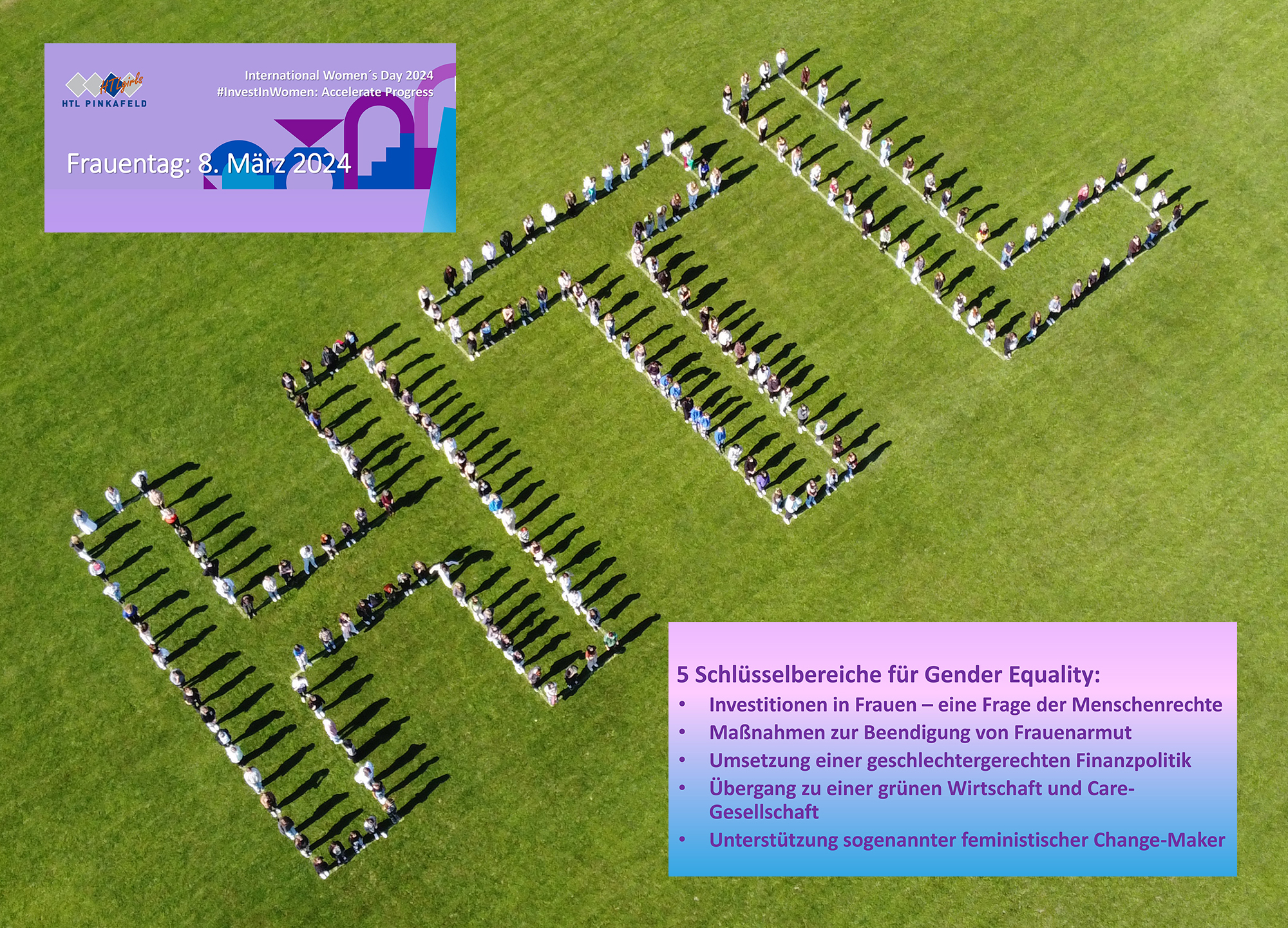Anlässlich des Weltfrauentags „IWD 2024“ am 8. März wird an der HTL Pinkafeld mit einer Ausstellung im Eingangsfoyer auf die Unterschiede zwischen Frauen und Männer aufmerksam gemacht. Das diesjährige Thema lautet „Invest in women: Accelerate progress“ (In Frauen investieren: Fortschritte beschleunigen).