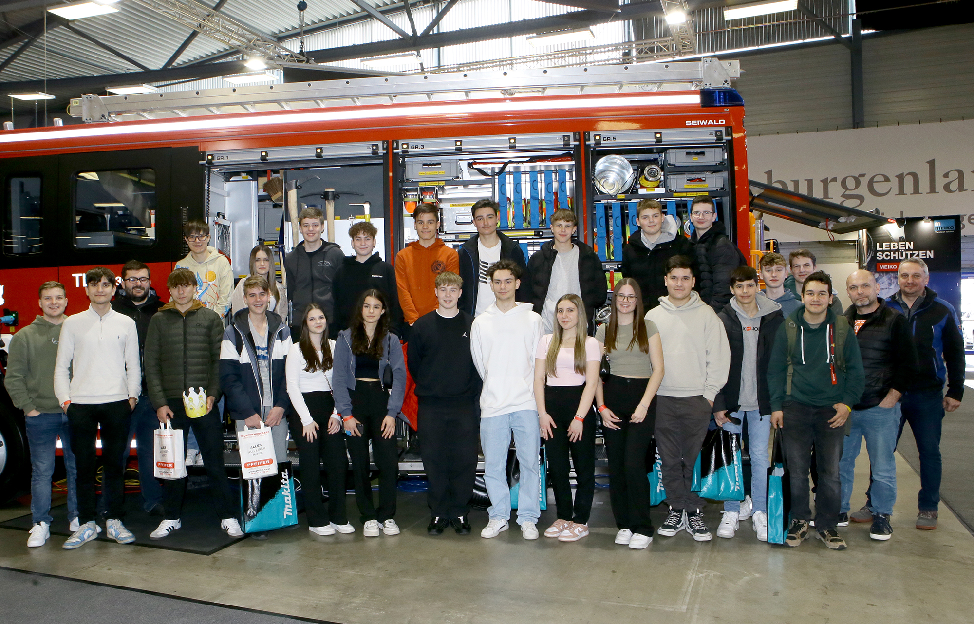 Die erste und ein Teil der vierten Gebäudetechnik-Klasse der Zusatzausbildung „Brand- und Zivilschutz“ besuchten Anfang März die Feuerwehrfachmesse „Signal 112“ in Oberwart. Begleitet wurden sie dabei von BEd Thomas Lehner, BEd Werner Moser und HBI Prof. Lukas Tkauz, der selbst Feuerwehrkommandant in Podgoria und aktives Mitglied bei der Stadtfeuerwehr Pinkafeld ist.Für den ersten Jahrgang war es ein Einstieg in die Feuerwehrausbildung. Die Schülerinnen und Schüler des vierten Jahrgangs, die bei der Feuerwehrausbildung dabei sind, waren dann am nächsten Tag auf der Messe. Hier organisierte Mate Takacs den Besuch.
