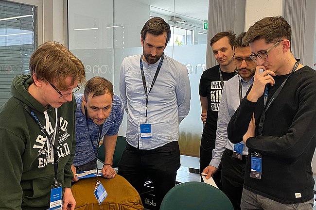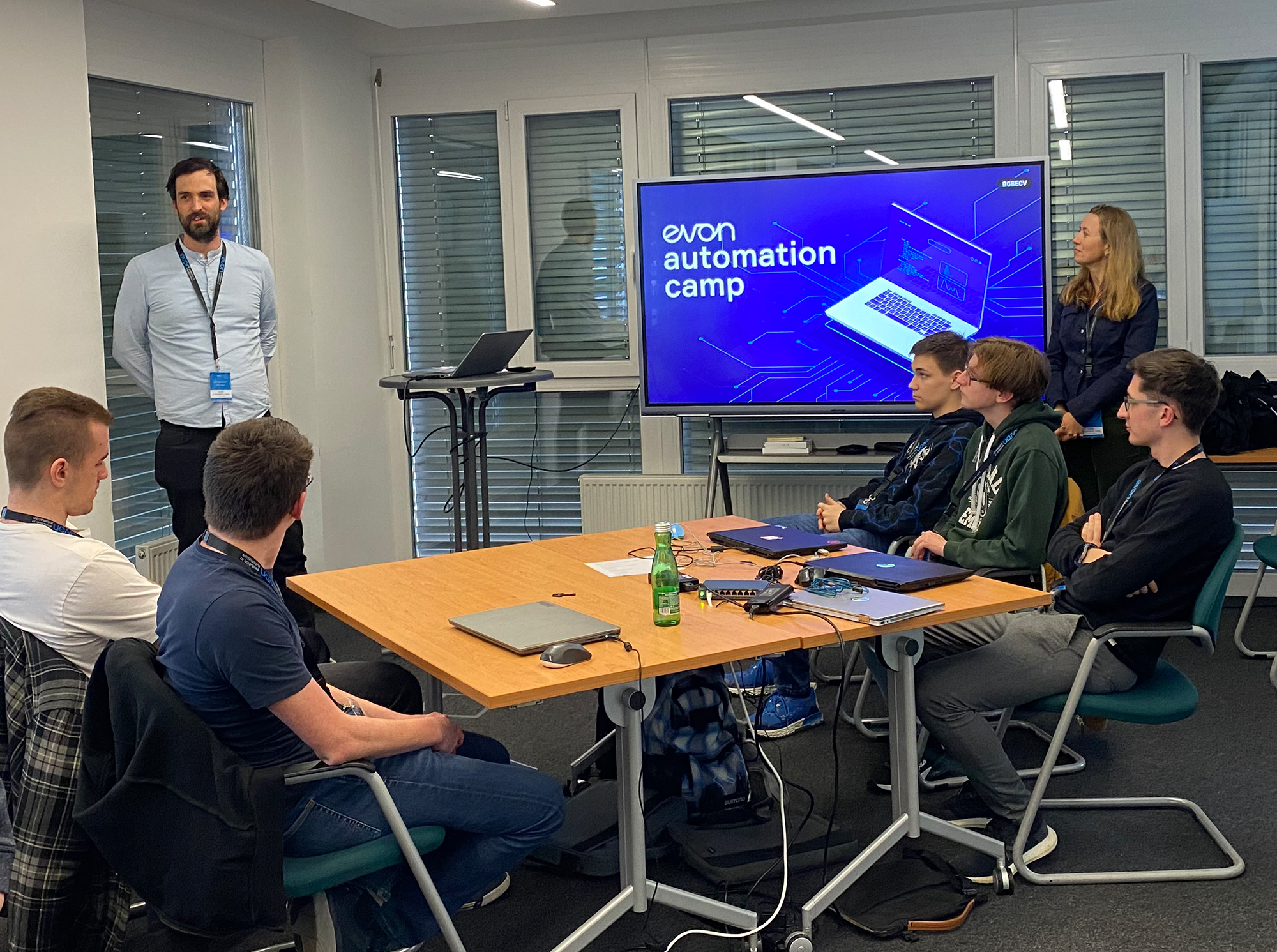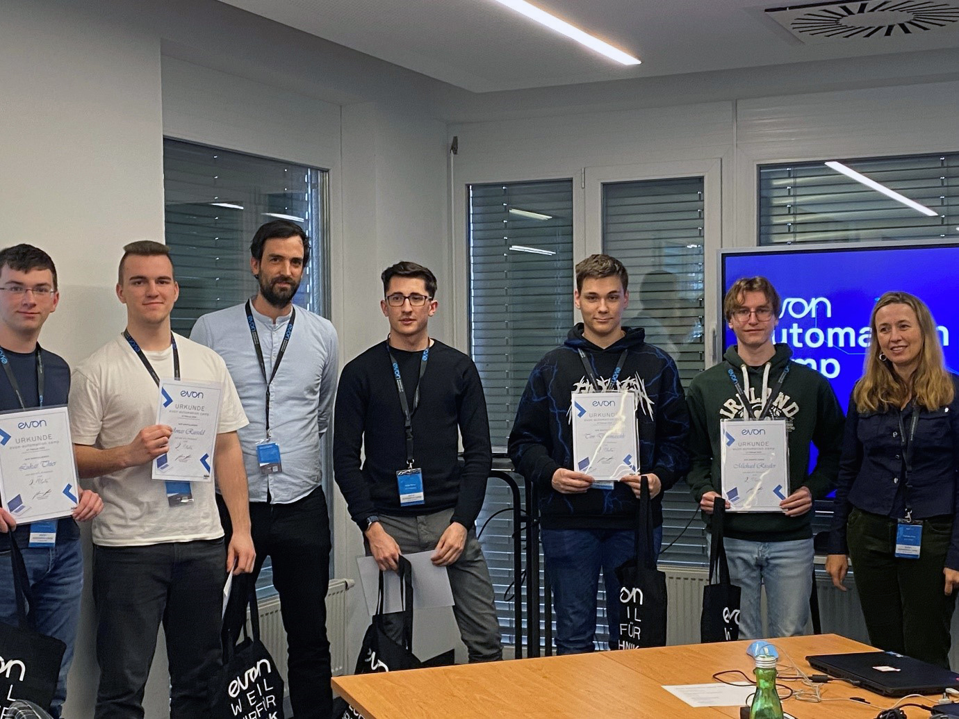 Im Anschluss daran wurde die Aufgabenstellung aus dem Bereich Gebäudeautomation vorgestellt und die Teams machten sich an die Umsetzung des Projektes. Nach einigen Stunden intensiver Programmerstellung wurde der Code an realer Hardware getestet. Jedes Team stellte seine Ergebnisse vor, im Anschluss daran bewerteten die Experten der evon GmbH die unterschiedlichen Lösungen.