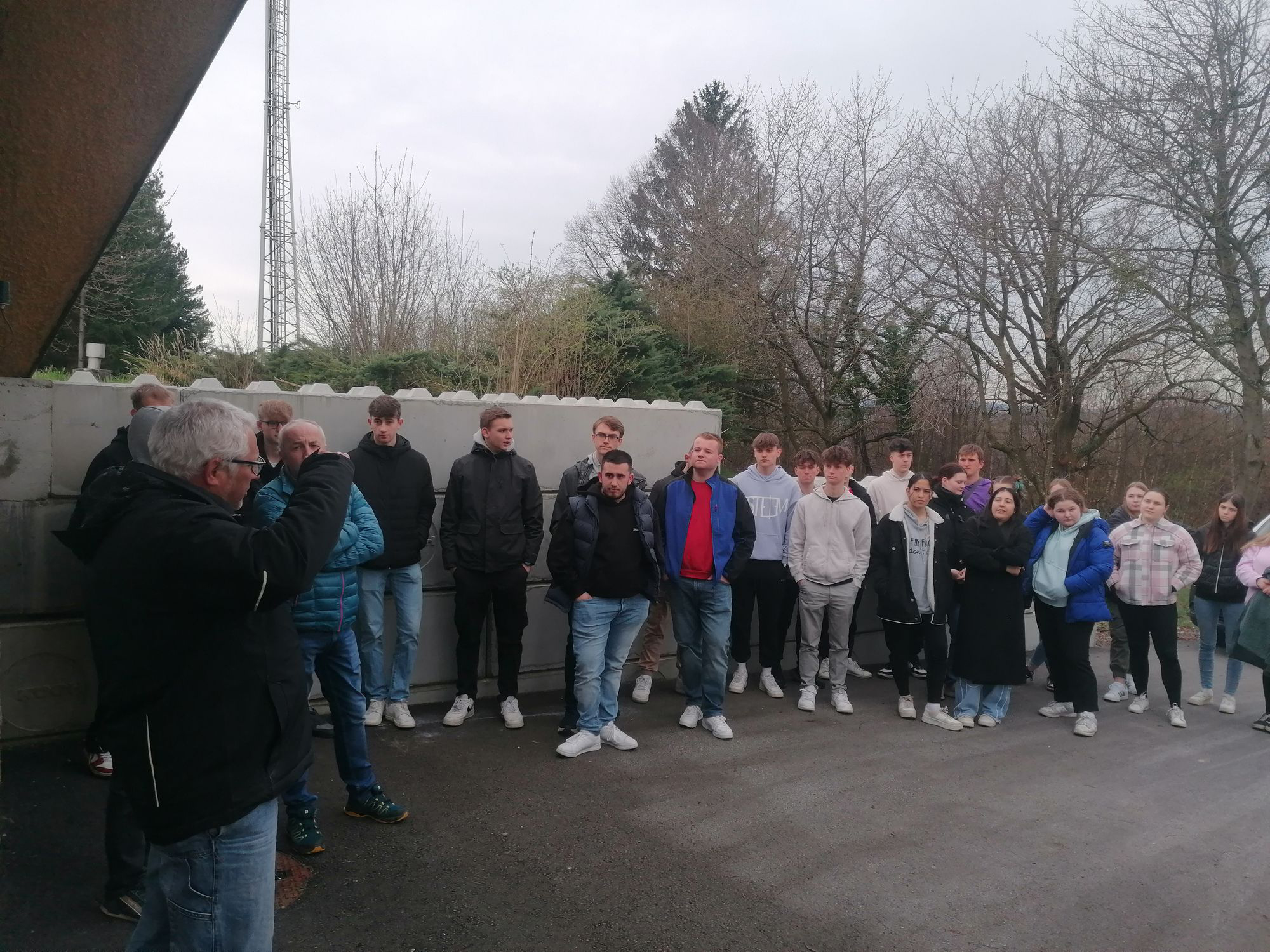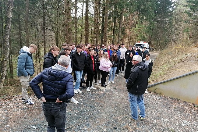 Im Anschluss daran begab sich die Gruppe zur Quellfassung Karleck. Die Quellfassung Karleck wurde im Jahr 2023 komplett neu saniert und die Quellen neu gefasst. Herr Szendi führte die Schüler durch das Gelände und erklärte die Maßnahmen zum Schutz der Wasserressourcen sowie die Bedeutung der nachhaltigen Nutzung von Wasserquellen.