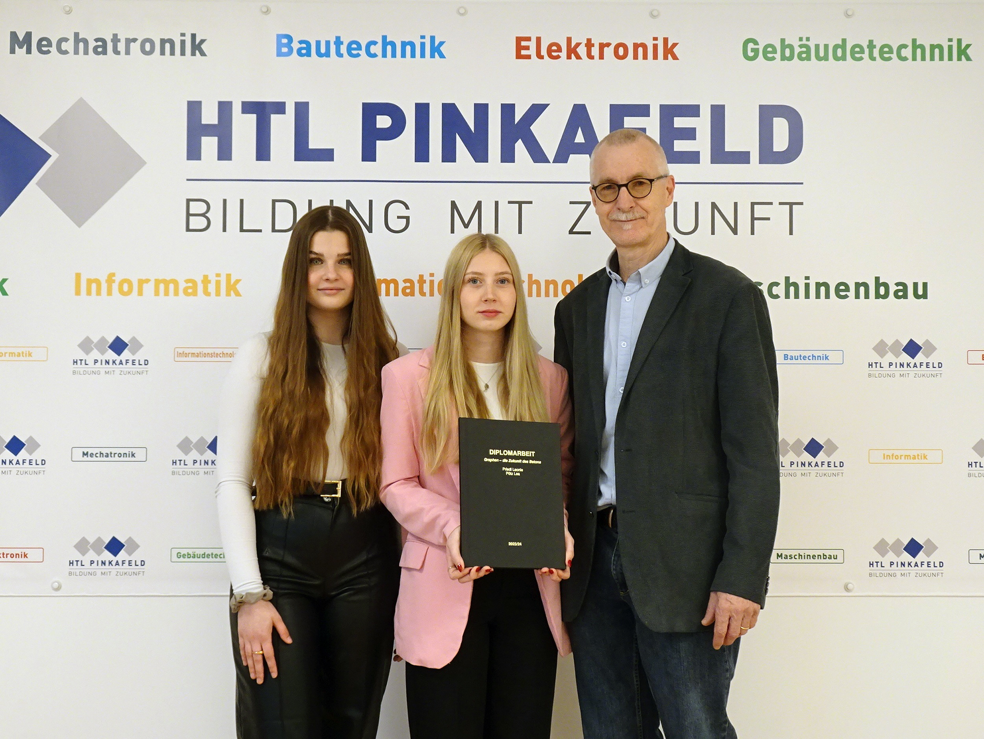 Mitte April wurde die Diplomarbeit „Graphen – die Zukunft des Betons“ von den Bautechnik-Maturantinnen Priedl Leonie und Pötz Lea an ihren Betreuer Oberstudienrat Peter Derler übergeben.