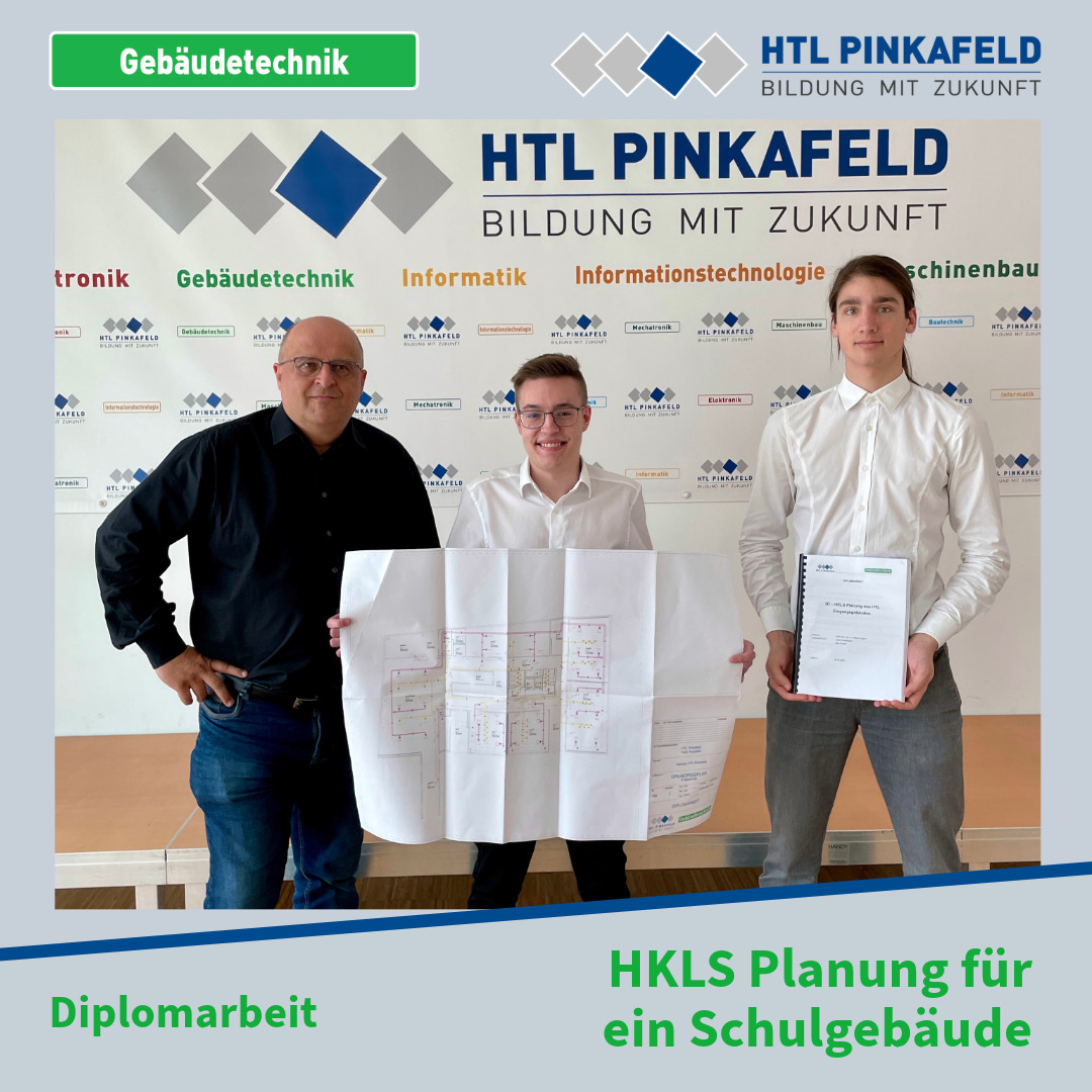 Anfang April konnten die Gebäudetechnik-Maturanten Jakob Kaindlbauer und Max Knotzer ihre Planungsergebnisse des Neubaus der HTL Pinkafeld an den Auftraggeber HTL Pinkafeld überreichen. Betreut wurde die Diplomarbeit von Prof. Dipl.-Ing. Dr. Wilhelm Zapfel.