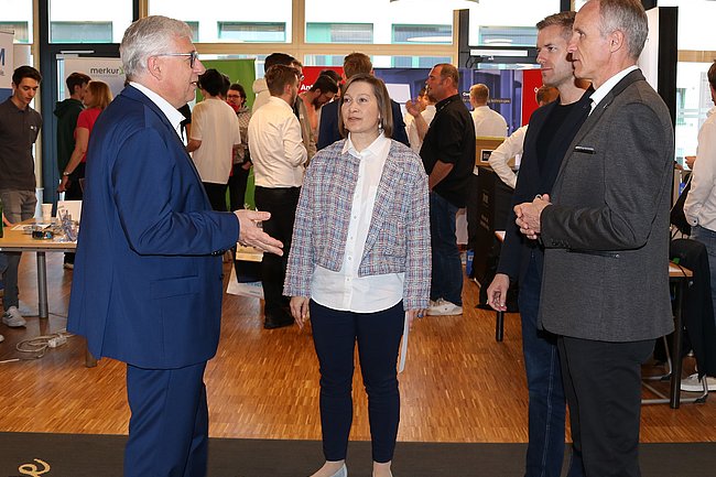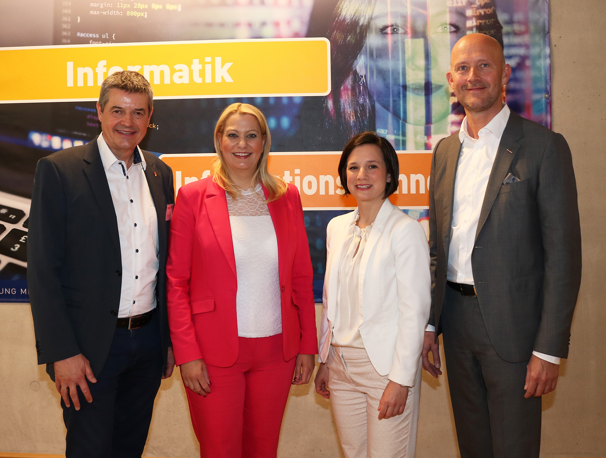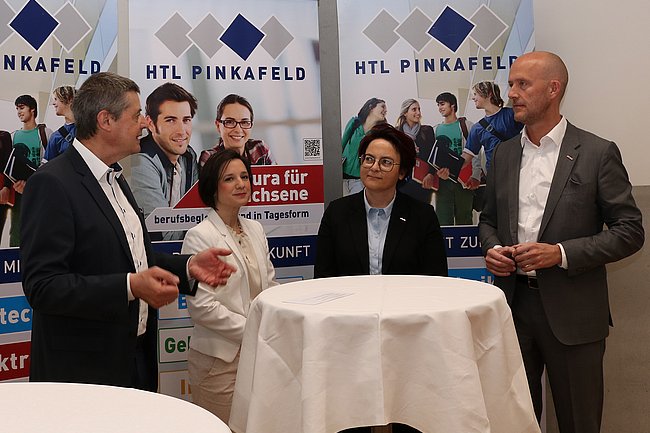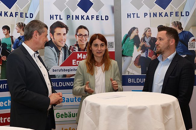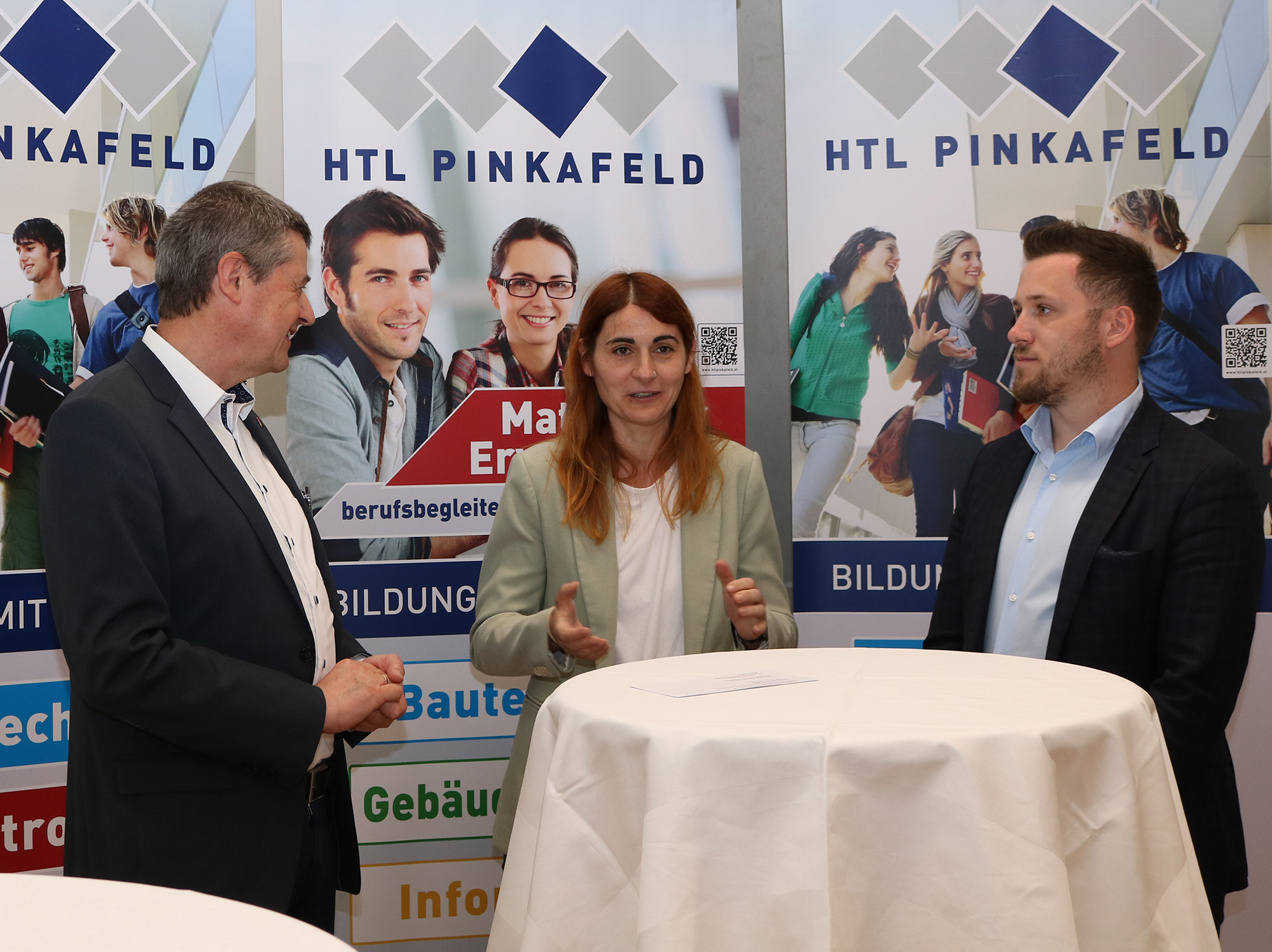 WKO-Vizepräsident Martin Horvath, IV Burgenland-Geschäftsführerin Aniko Benkö und WKO-Regionalstellenobfrau Tanja Stöckl dankten für die gute Zusammenarbeit und berichteten u.a., dass ihre Betriebe immer wieder bestens qualifizierte Mitarbeiterinnen und Mitarbeiter finden, die nach der HTL-Ausbildung bei ihnen andocken.
