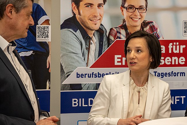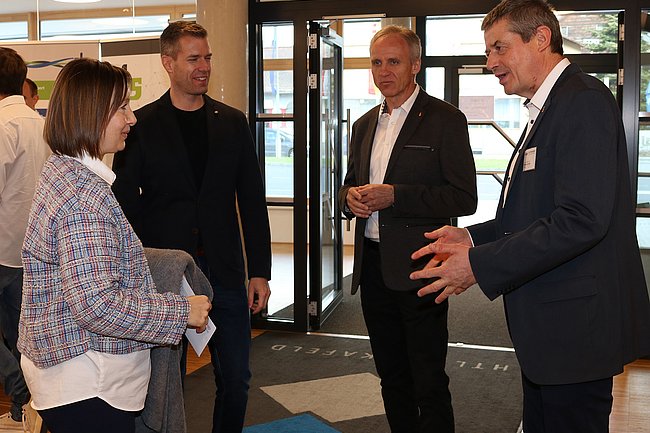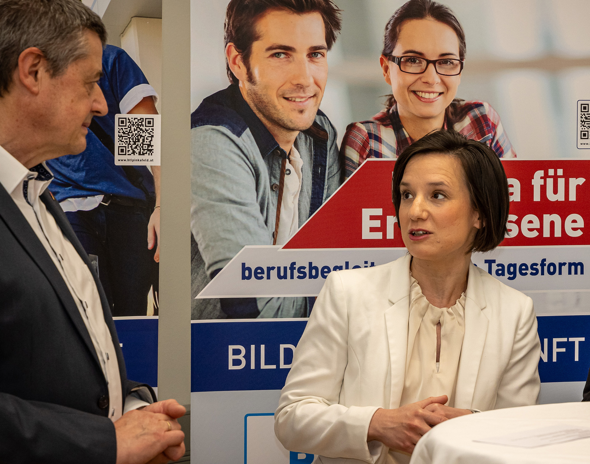 Bildungslandesrätin Daniela Winkler eröffnete die Veranstaltung und machte sich vor Ort ein Bild von der gut organisierten Veranstaltung: „Es ist toll, dass die HTL Pinkafeld ihren Schülerinnen und Schülern die Chance bietet, sich bereits während der Schulzeit nach zukünftigen Jobs umzuschauen oder für eine Studienrichtung zu interessieren, um so nach Absolvierung ihrer Matura ehestmöglich in das Berufsleben oder Studium einzusteigen. Die jährlich veranstalteten Karrieretage in Pinkafeld sind ein Vorzeigebeispiel, wie der Informationsaustausch zwischen Schule und Wirtschaft funktionieren kann. Wir freuen uns sehr darüber, dass mit der Wirtschaftskammer Burgenland und der Industriellenvereinigung auch zwei starke Partner diese Veranstaltung unterstützen.“