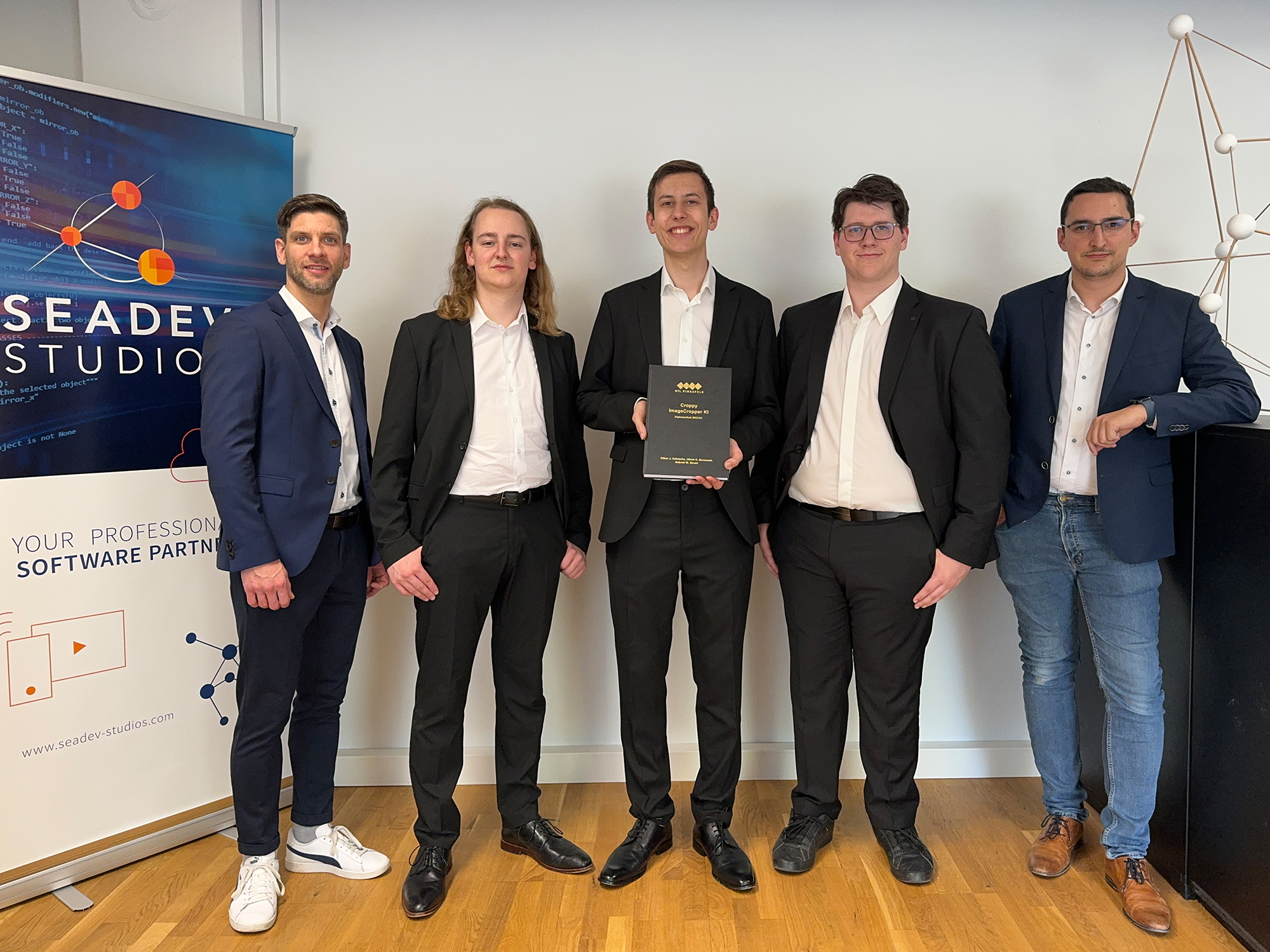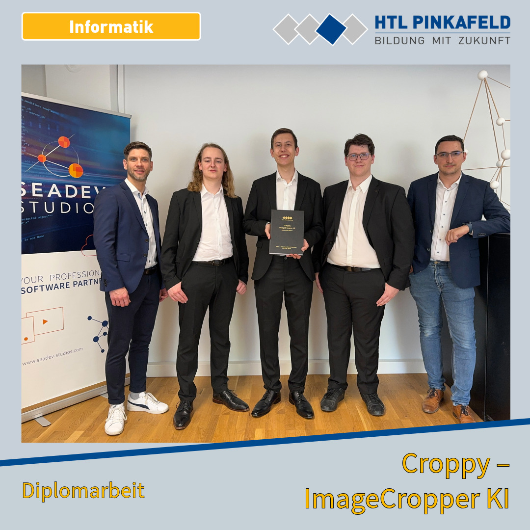 Anfang April wurde die Diplomarbeit „Croppy – ImageCropper KI“ von den Informatik-Maturanten Kilian J. Halwachs, Ulrich C. Barnstedt und Gabriel W. Strobl an den Auftraggeber SEADEV Studios GmbH übergeben.