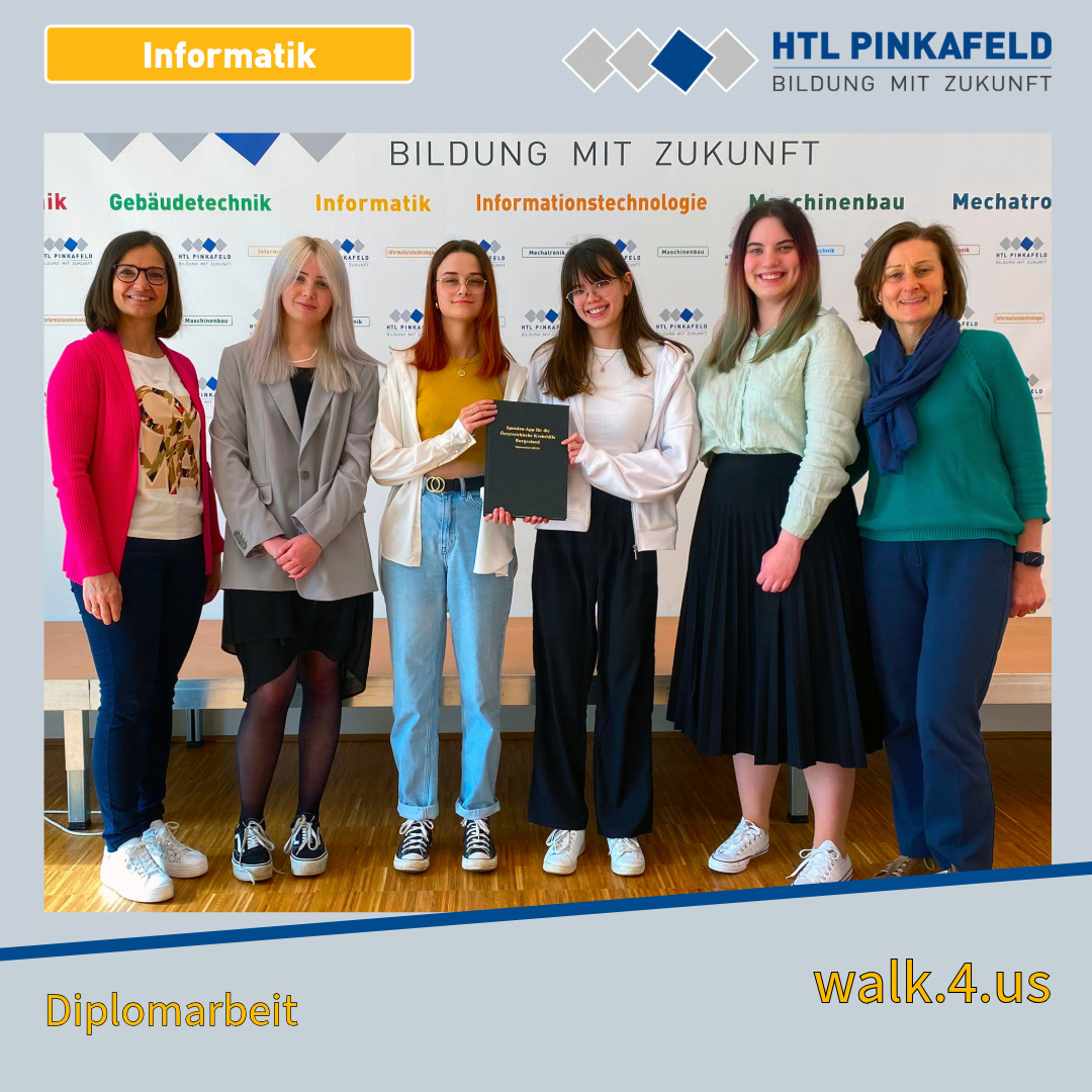 Anfang April wurde die Diplomarbeit „walk.4.us“ von den Informatik-Maturantinnen Anna Gruber, Stephanie Höber, Natalia Pinto-Buday und Nicole Prettenhofer an den Auftraggeber „Österreichische Krebshilfe Burgenland“ übergeben. Betreut wurde diese Diplomarbeit von Prof. Klaus Kirnbauer und Prof. David Zach.