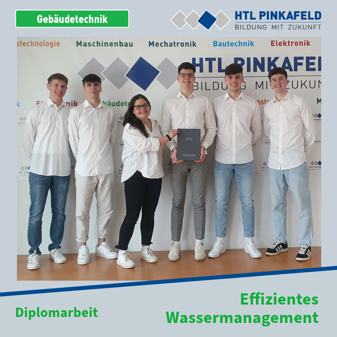 Anfang April wurde die Diplomarbeit „Effizientes Wassermanagement mit Abwasserwärmerückgewinnung, Regenwassernutzung mit innovativer Grüngestaltung“ von den Gebäudetechnik-Maturanten Thomas Bruckner, Elias Ferstl, Fabian Kugl, Fabian Schiller und Stefan Tuba an den Auftraggeber HTL Pinkafeld übergeben. Betreut wurde diese Diplomarbeit von Prof. Birgit Stephan.