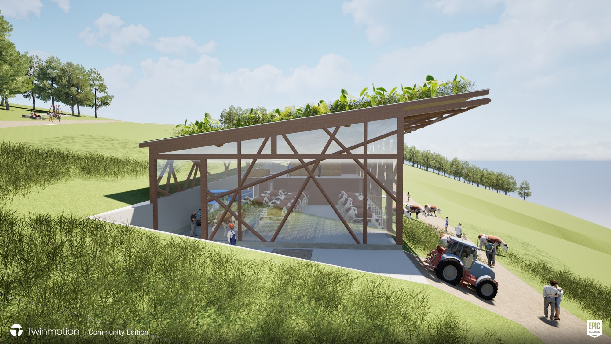 Ziel dieser Arbeit war die Ausarbeitung eines Entwurfes einer Almhütte in Holzbauweise, welche langlebig und widerstandsfähig gegen die hohe Belastung durch Wind und Wetter in höheren Gebirgslagen ist. Sowohl für die Errichtung als auch der Betrieb, z.B. Heizung, sollte größtenteils der nachwachsenden Naturstoff Holz verwendet werden. Neben der Almhütte wurde auch ein Kuhstall mit integrierter Käserei geplant. In einem angeschlossenen Verkaufsraum können die Produkte verkostet und vermarktet werden. Ein touristischer Anziehungspunkt soll einen Aussichtsturm werden, der im ähnlichen Design aus filigranen Stäben wie bei einem Mikado entworfen wurde und barrierefrei erreichbar ist, um ihn zugänglich für alle Menschen zu machen.