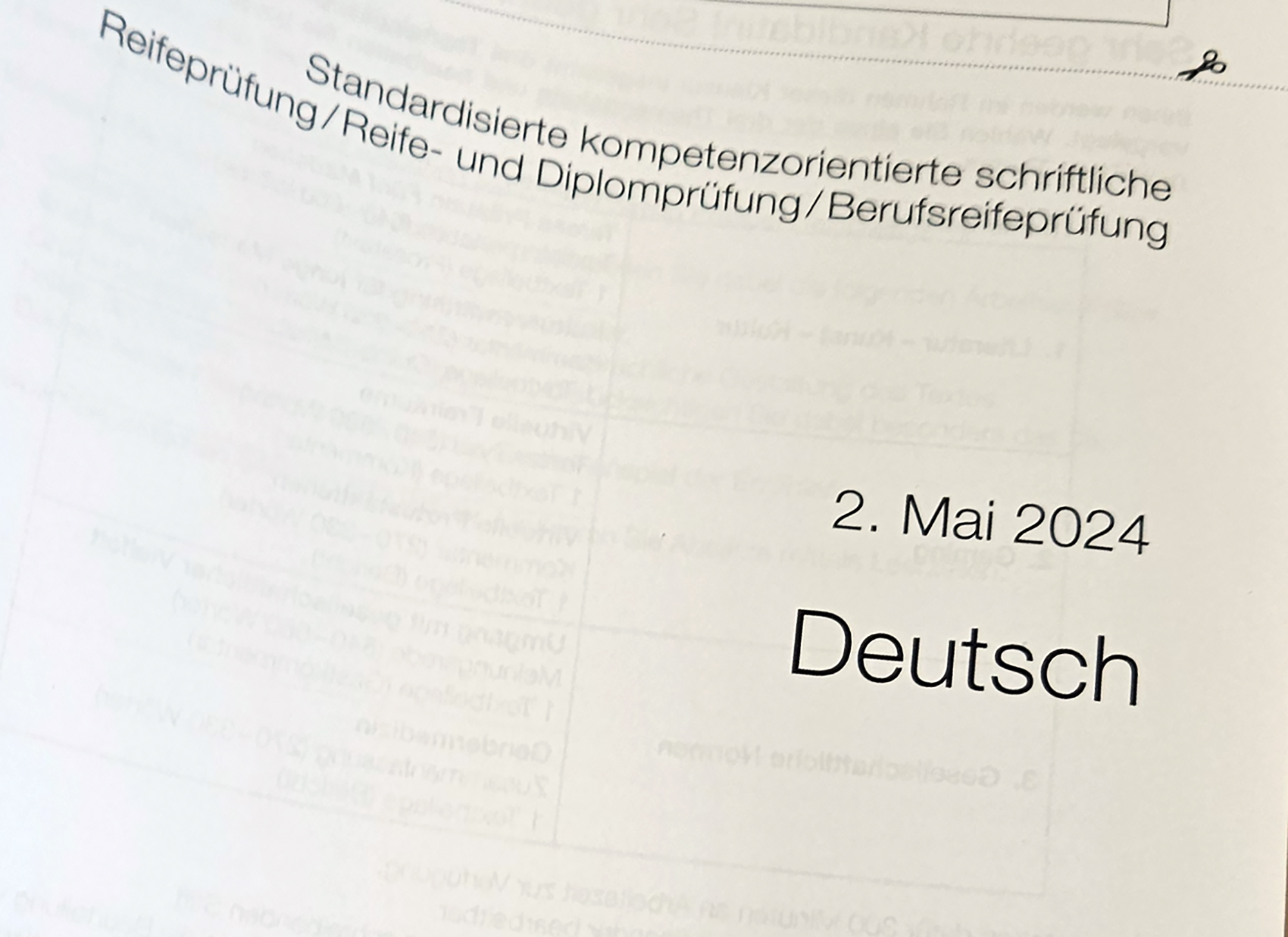 Mit der standardisierten Deutschklausur haben die abschließenden schriftlichen Prüfungen des Reife- und Diplomprüfungshaupttermins 2024 am 2. Mai – hoffentlich gut! – begonnen.