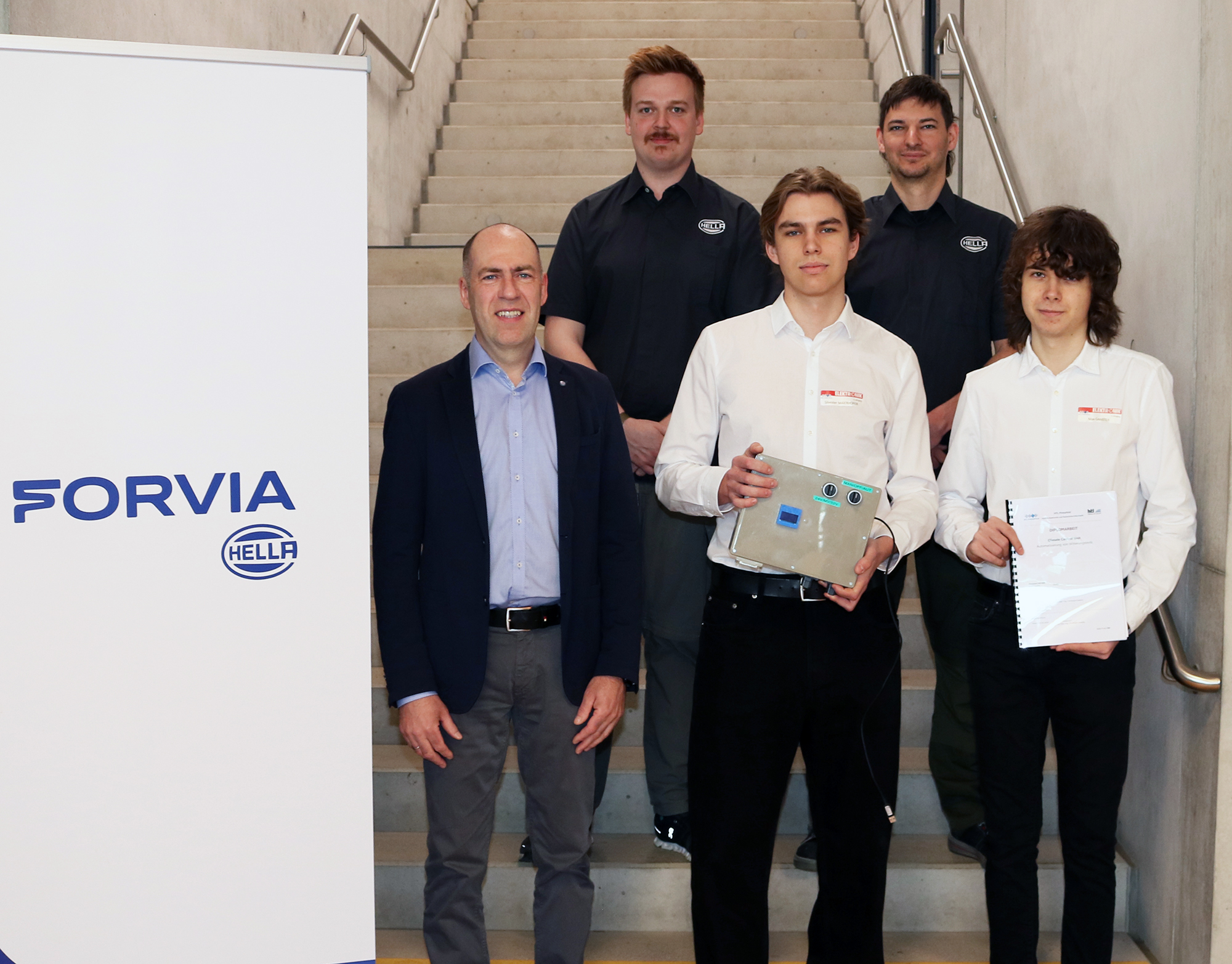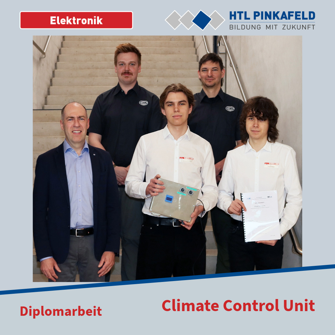 Anfang April wurde die Diplomarbeit „Climate Control Unit“ von den Elektronik-Maturanten Max Ganster und Silvester Maierhofer an den Auftraggeber Hella Fahrzeugteile Austria GmbH übergeben. Betreut wurde diese Diplomarbeit von Prof. Christoph Csebits.