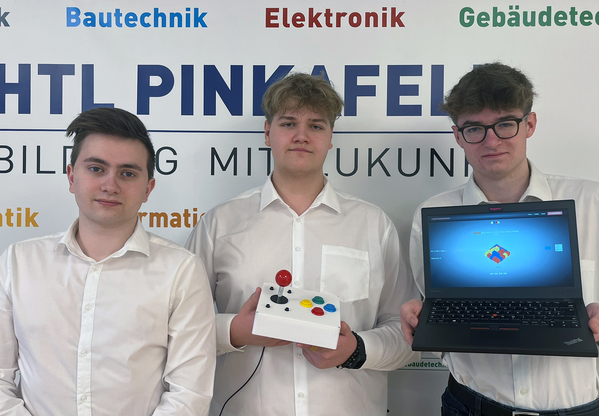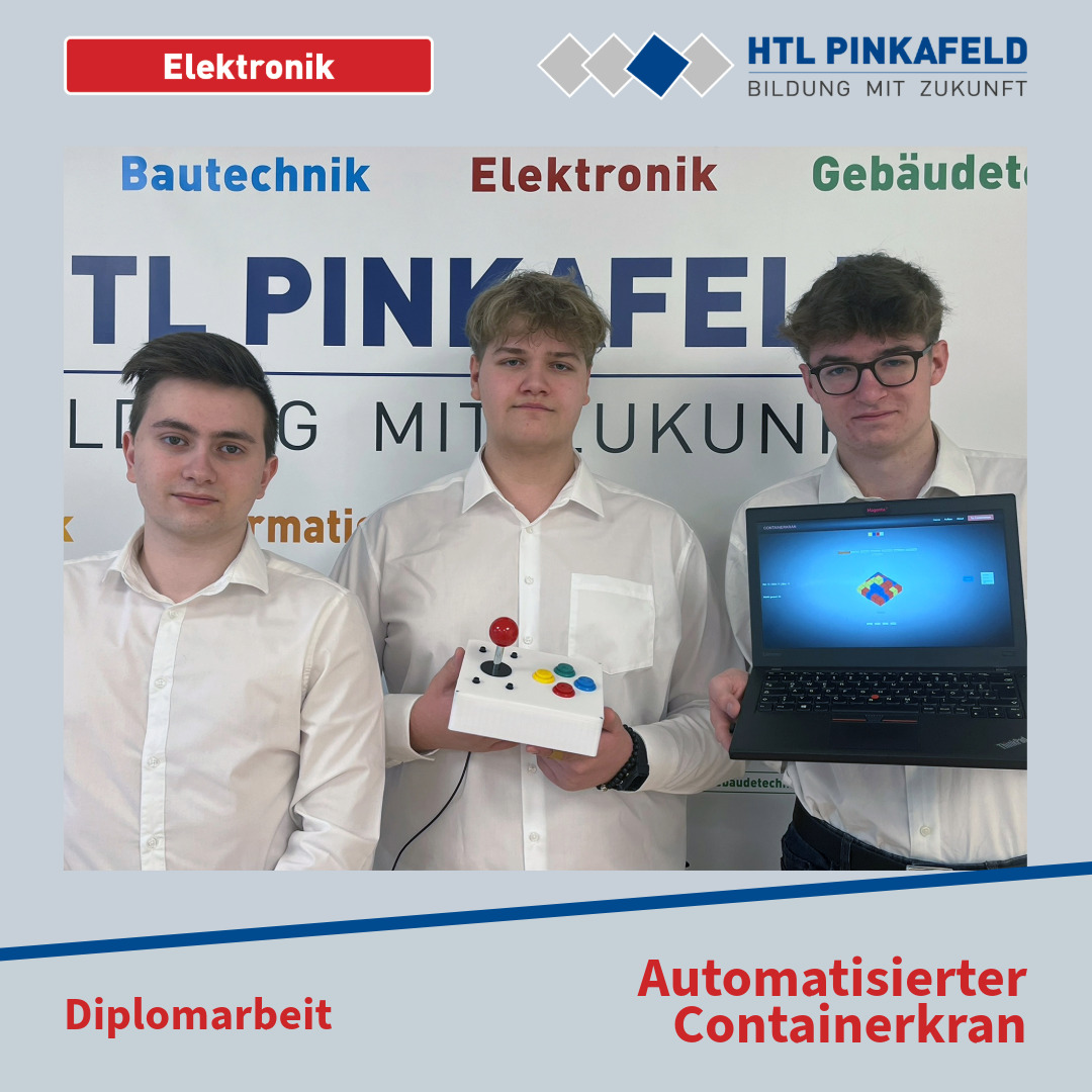Im April 2024 wurde die Elektronik-Diplomarbeit „Automatisierter Containerkran“ von den Maturanten Gabriel Koglbauer, Nico König und David Ringhofer an den Auftraggeber HTL Pinkafeld übergeben. Betreut wurde die Arbeit von Prof. Robert Pöttler.