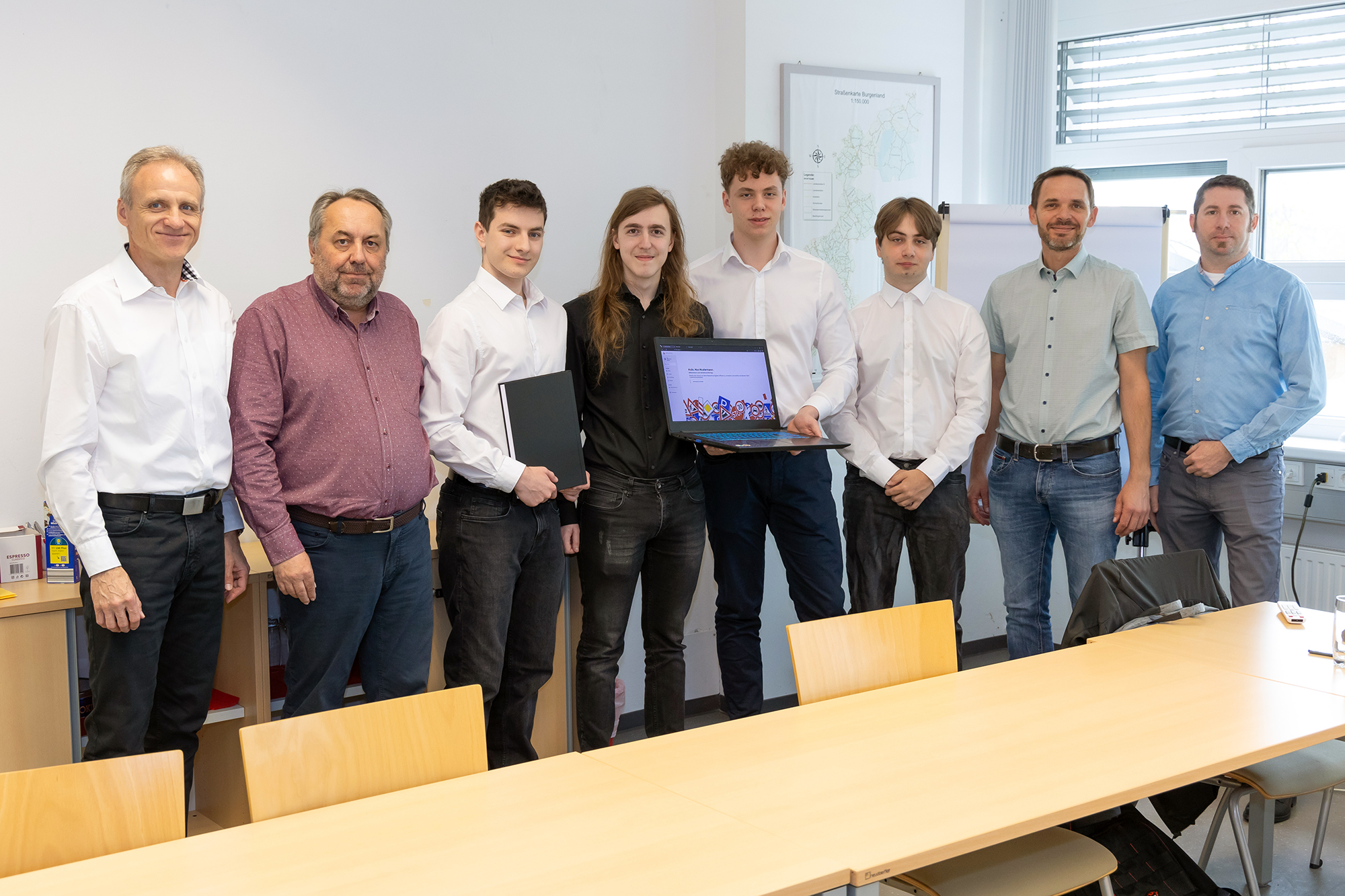 Papierkram reduzieren, Fehler minimieren und Gesamteffizienz verbessern – das war das Motto der Informatik-Maturanten Lorenz Wiesenhofer, Julian Kainz, Oleksandr Lisovets und Marcel Stättler, als sie die Diplomarbeit zur Entwicklung einer Web-Applikation für die Verwaltung von Verkehrsschildern der Baudirektion Burgenland annahmen.Im April wurde die Diplomarbeit „Verkehrsschild App“ von den Maturanten an den Auftraggeber übergeben. Betreut wurde die Diplomarbeit von Prof. Ewald Hagenauer und Prof. Thomas Weyse.