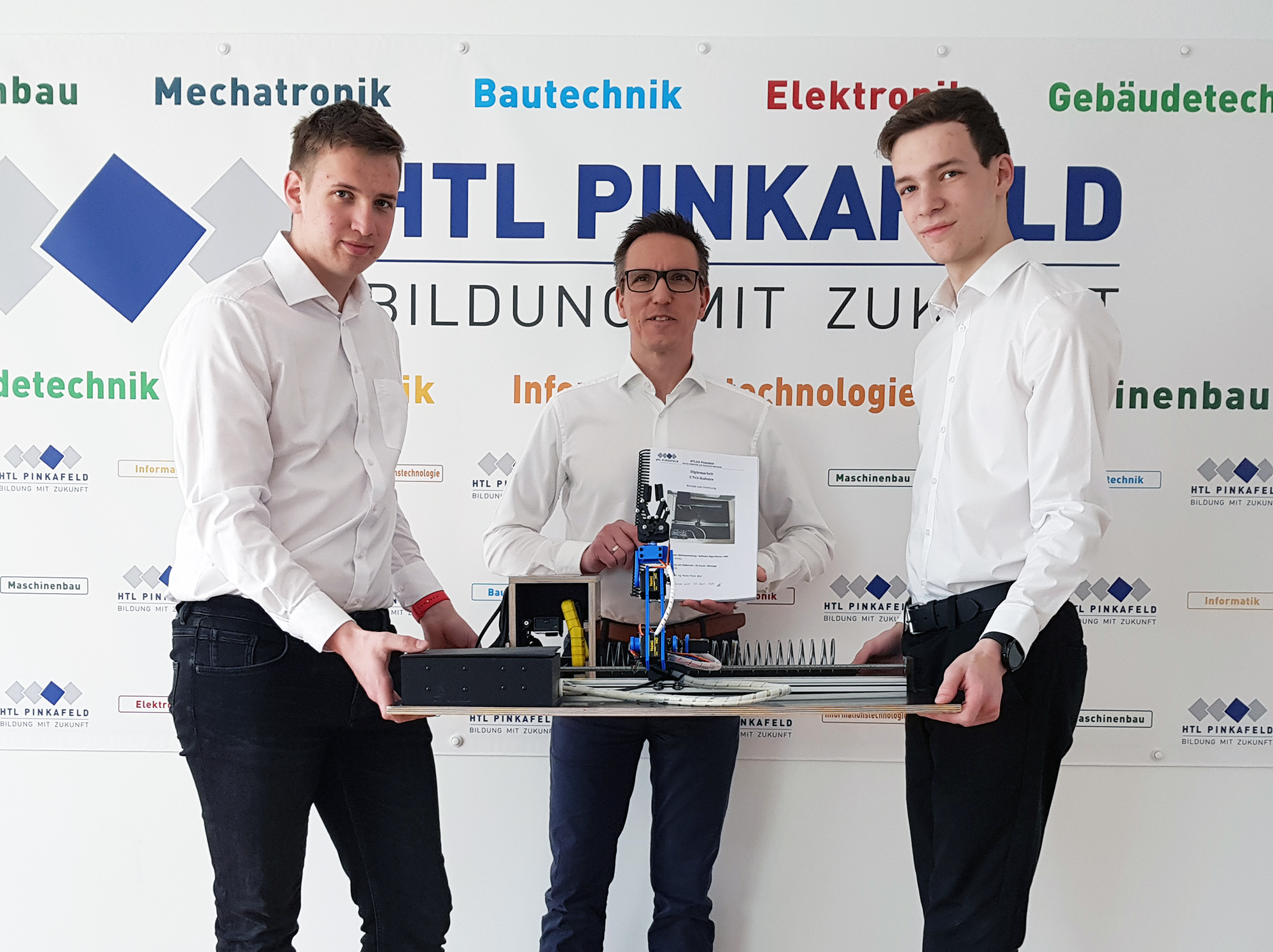 Im April wurde die Diplomarbeit „UNO-Roboter“ von den Elektronik-Maturanten Manuel Weninger und Mario Gschiel an den Auftraggeber HTL Pinkafeld übergeben. Betreut wurde die Diplomarbeit von Ing. Rainer Pinter.