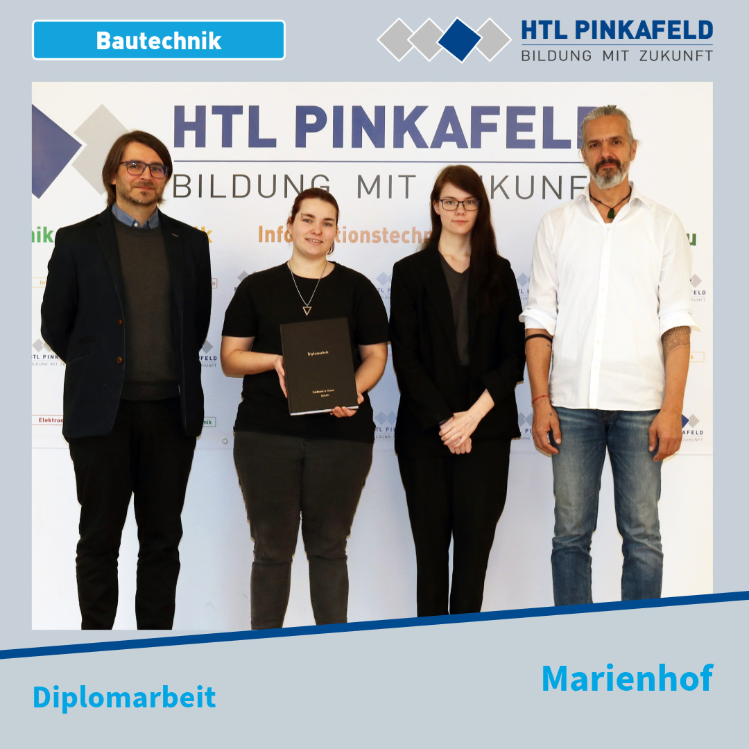 Die Diplomarbeit der Bautechnik-Maturantinnen Melanie Kohlhauser und Carina Genser wurde kürzlich ihren Diplomarbeitsbetreuern Prof. Christoph Schermann und Prof. Leonhard Schmid übergeben.