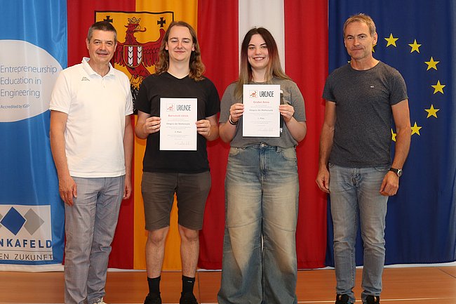 Am 21. Mai wurden bei der Landessiegerehrung in Oberpullendorf die besten Mathematikerinnen und Mathematiker des Burgenlands von Schulqualitätsmanager Franz Bock mit Urkunden und Sachgeschenken geehrt. Eingeladen dazu waren auch mehrere Schülerinnen und Schüler der HTL Pinkafeld.