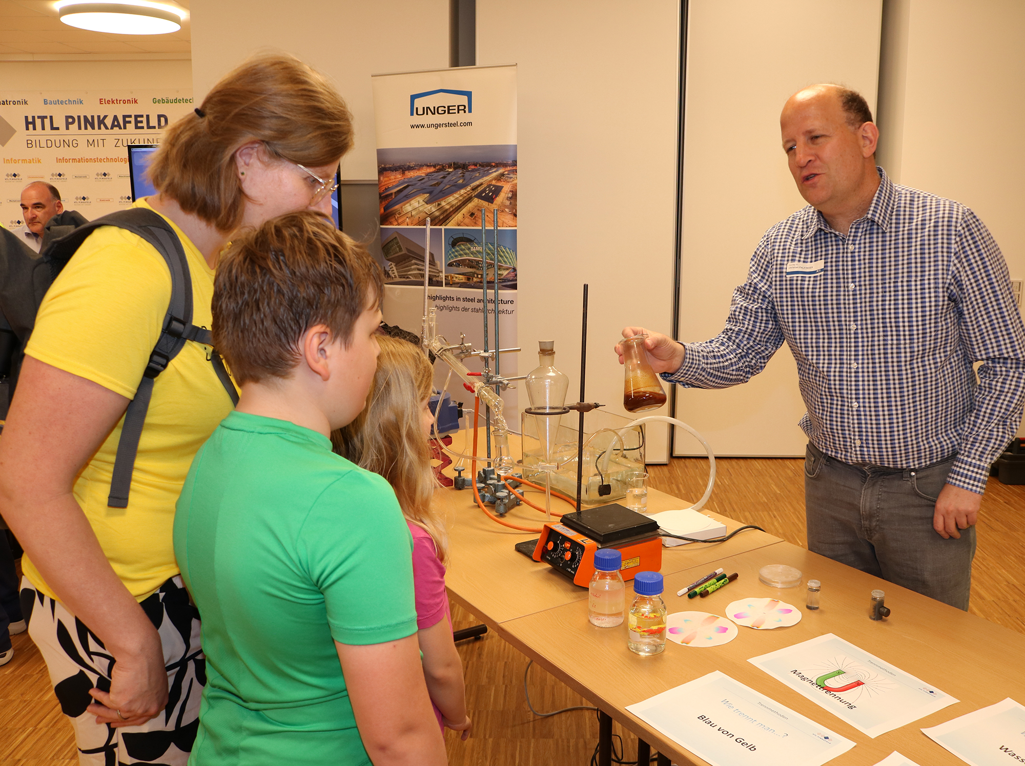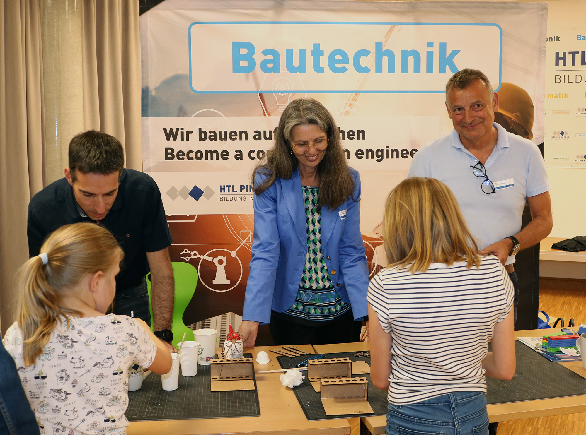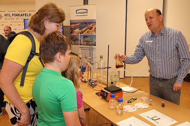 Neben den Mitmachstationen der vier HTL-Fachabteilungen Bautechnik, Elektronik, Gebäudetechnik und Informatik / IT waren deren Bildungspartner Unger Stahlbau, eom solutions, Spitzer Engineering und SEADEAV Studios vor Ort. Des Weiteren hatten die HLW Pinkafeld die Stammzellentypisierung als Thema und die BAfEP Oberwart und eine Chemie-Station der HTL luden die kleinsten Gäste zum Ausprobieren ein.