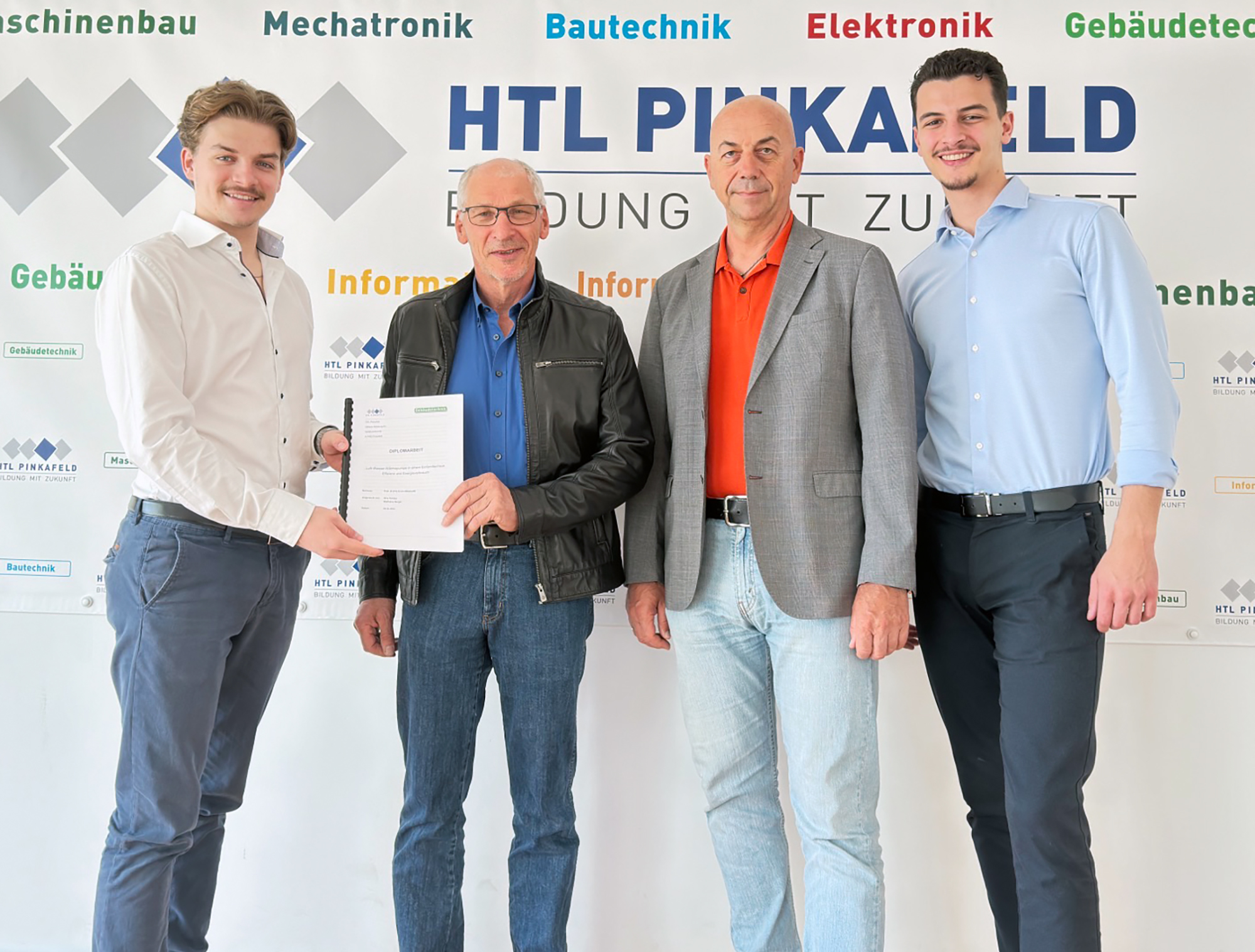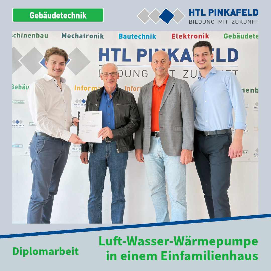 Im April konnten die Gebäudetechnik-Maturanten Idriz Axhijaj und Matthäus Berger im Rahmen ihrer Diplomarbeit in einem Einfamilienhaus die Effizienz einer Luft-Wasser-Wärmepumpe anhand aufgenommener Messwerte erheben. Insbesondere wurde der Verlauf des COPs im Warmwasser- und Heizbetrieb in Abhängigkeit der Wetterdaten vor Ort (Außentemperatur und Außenfeuchte) untersucht. Zusätzlich wurden die Betriebskosten der Luft-Wasser-Wärmepumpe mit der zuvor installierten Ölheizung verglichen und bewertet.
