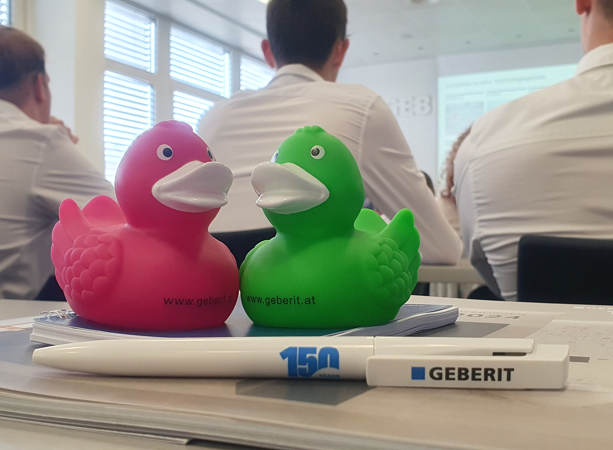 Ende Mai besuchte der vierte Gebäudetechnik-Jahrgang der HTL Pinkafeld unter Leitung von Frau Prof. Birgit Stephan und Herrn Prof. Peter Gesslbauer die Firma Geberit www.geberit.at/home/ in Pottenbrunn. Nach einer kurzen Einführung durch Herrn Ing. Harald Hofko in die Firma Geberit bekamen die Schülerinnen und Schüler in drei Gruppen eine von äußerst kompetenten Lehrlingen der Firma Geberit geführte Werksführung, die auf großes Interesse stieß. Danach wurden die Schülerinnen und Schüler auf neuesten Stand der Produkte von Geberit gebracht.