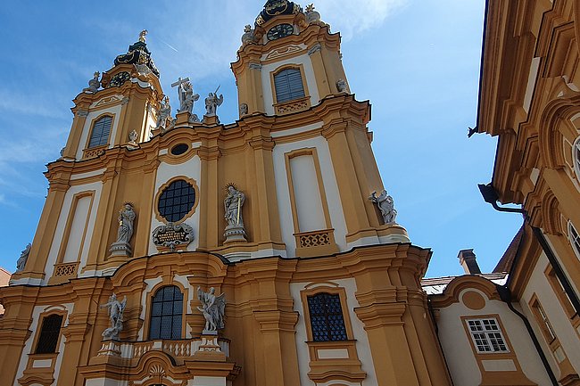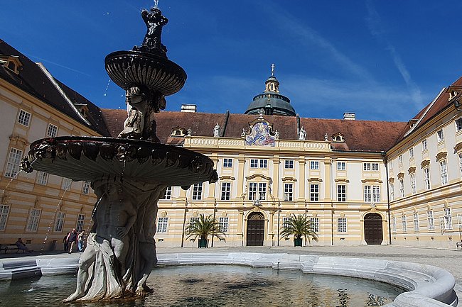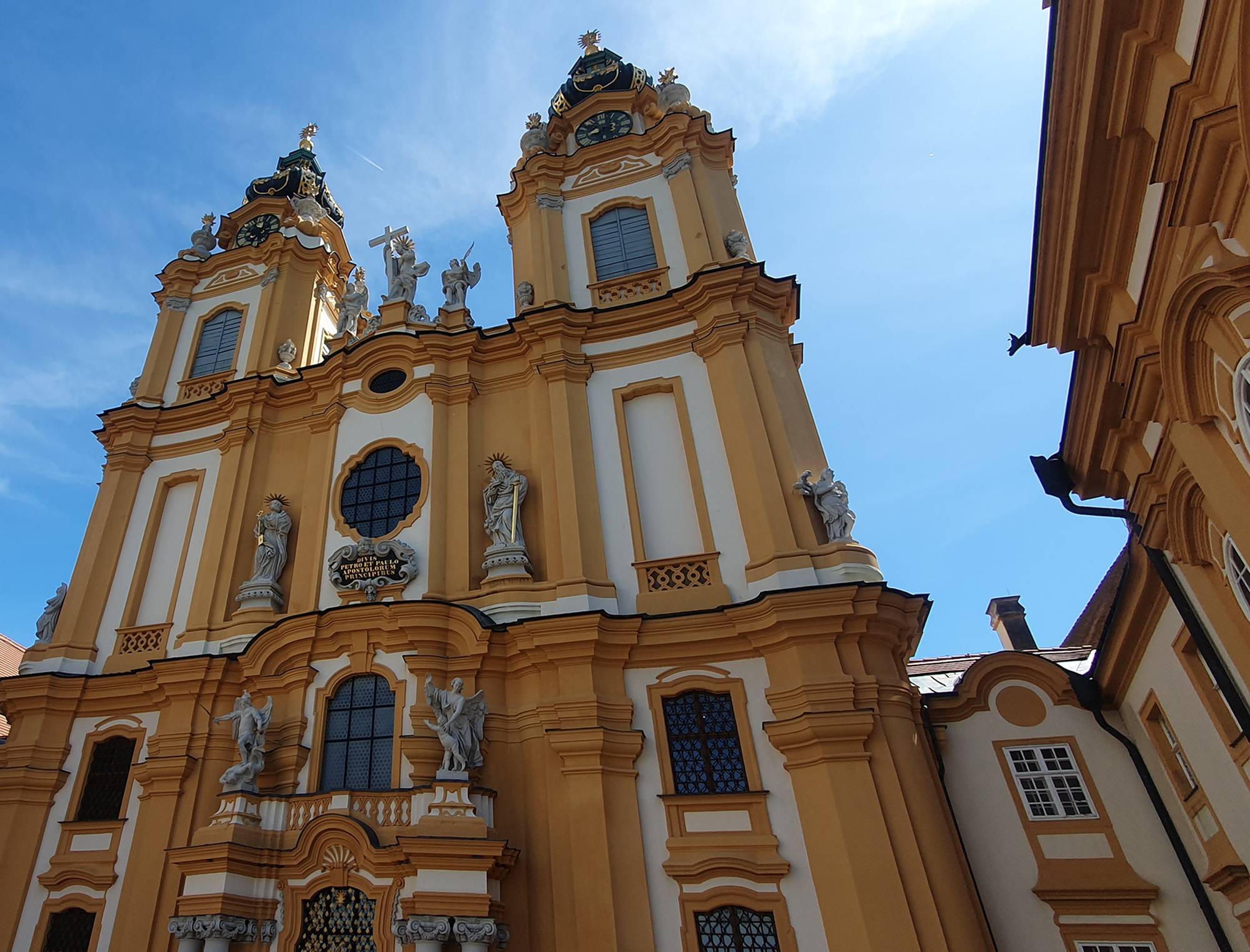 „Wie Wasser ein Spiegel ist für das Gesicht, so ist das Herz ein Spiegel für den Menschen“. Unter diesem Motto begann der zweite Tag der Exkursion mit einer Führung im Stift Melk https://www.stiftmelk.at/, UNESCO Weltkulturerbe und ein Stück österreichische Geschichte. Über die Kaiserstiege gelang die Gruppe in den Marmorsaal, das Stiftsmuseum, die Bibliothek und schlussendlich in die hochbarocke Stiftskirche des Benediktiner Ordens.