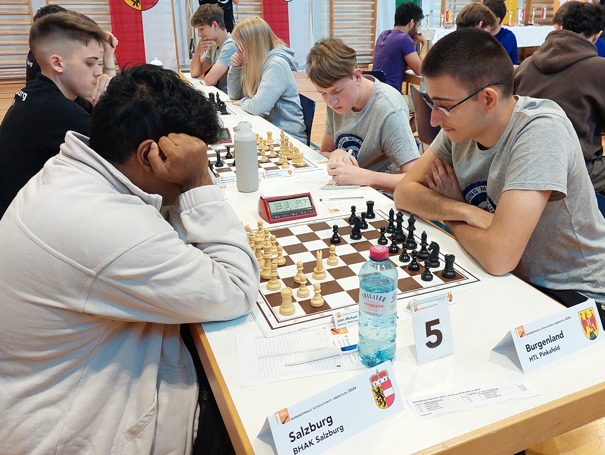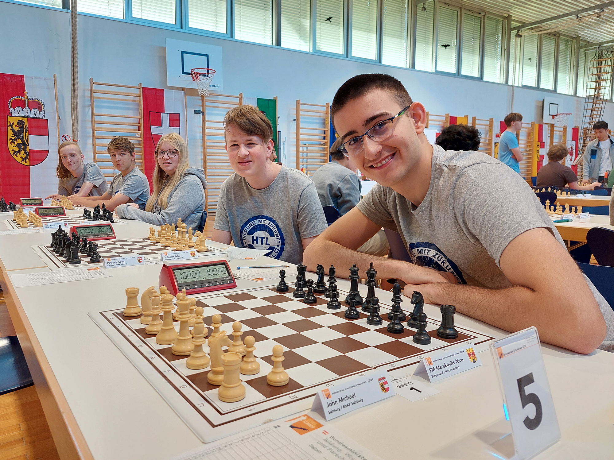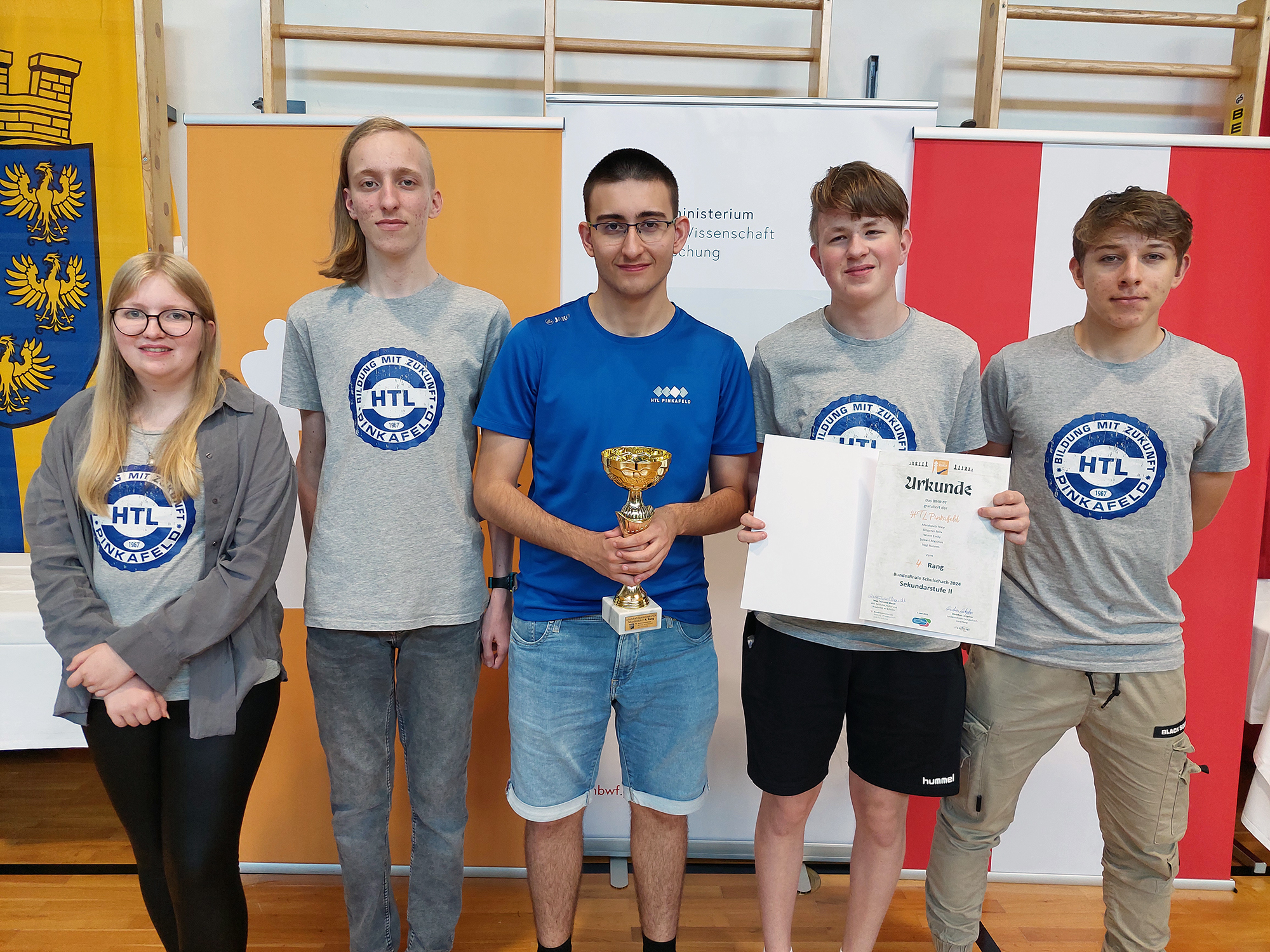 Nico Marakovits (3AHGT), Matthias Stöberl (2AHIT), Felix Stögerer (1AHEL), Hannes Vögl (2AHIF) und Emily Wurm (2CHBT) von der HTL Pinkafeld vertraten als Landessieger das Burgenland und konnten sich mit den besten Schachspieler*innen aus ganz Österreich messen.