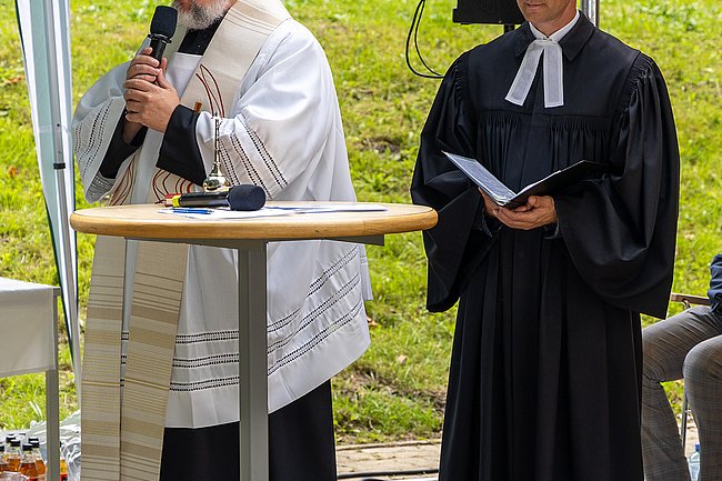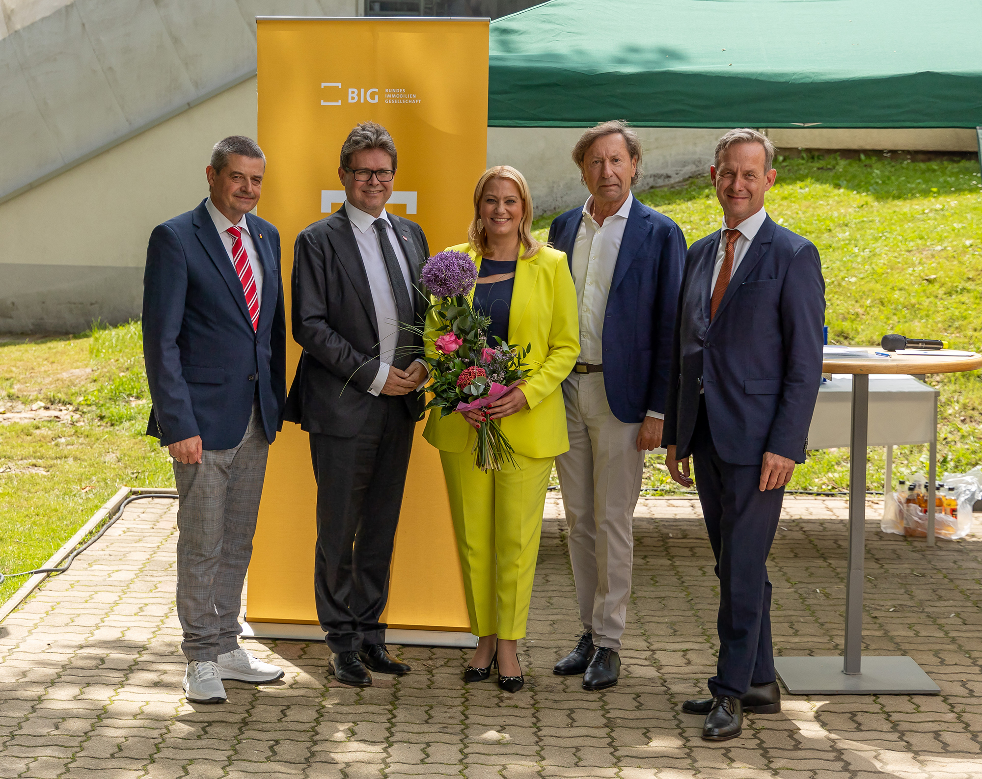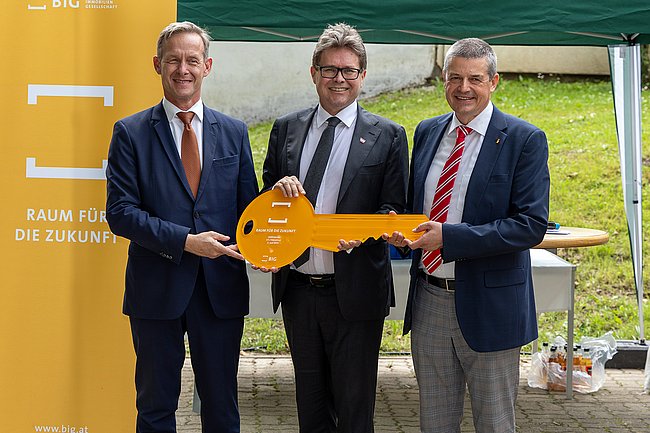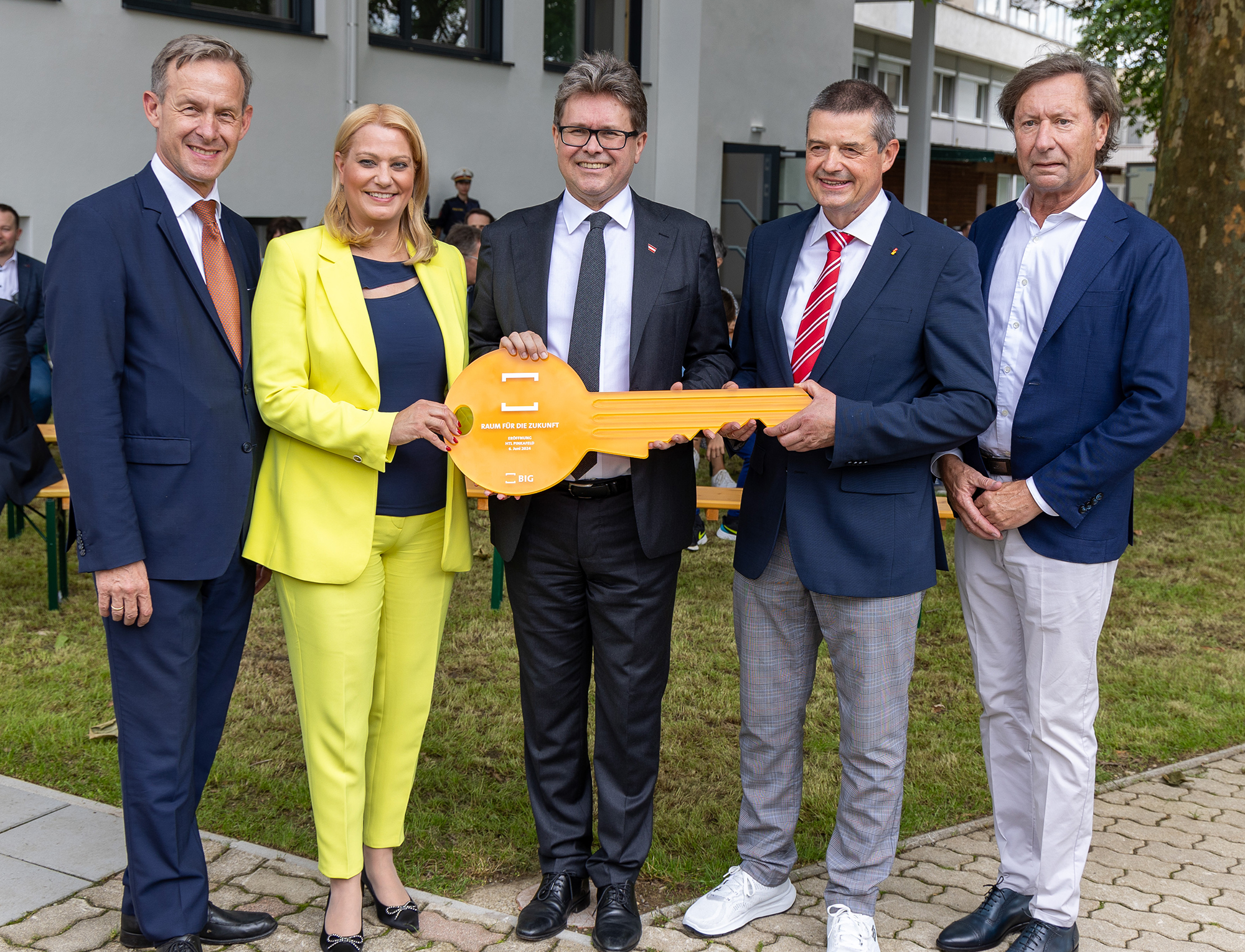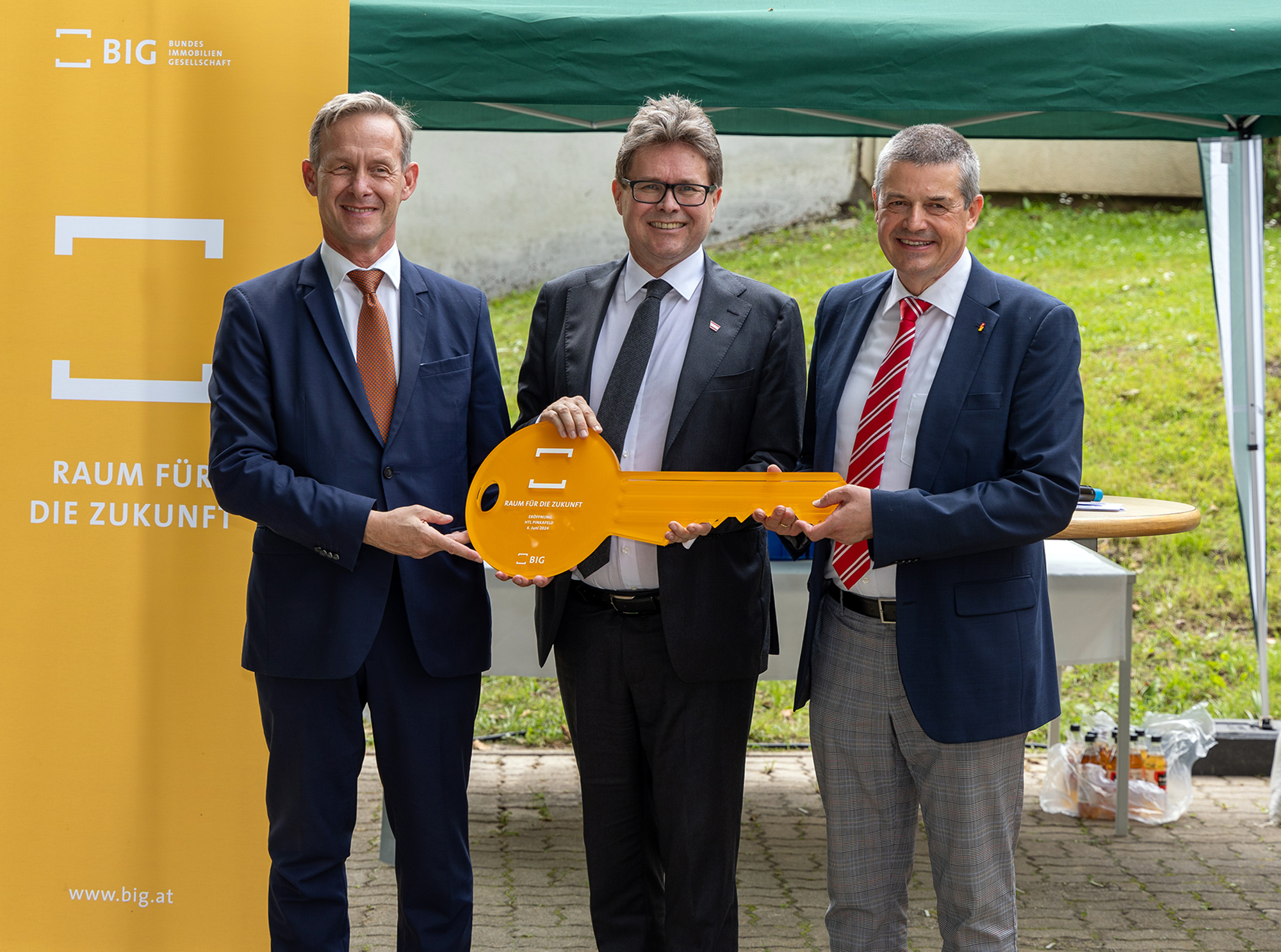 Die Brassband der HTL Pinkafeld mit rund 50 musizierenden Schülern und Lehrern unter der Leitung von Prof. Paul Erdely sorgten für die festliche Umrahmung, Pfarrer Norbert Filipitsch und Pfarrer Carsten Merker-Bojarra spendeten den Ökumenischen Segen. Zum Abschluss erhielt Dir. Lercher aus den Händen von BM Polaschek und BIG-Geschäftsführer Beck einen symbolischen Schlüssel überreicht.