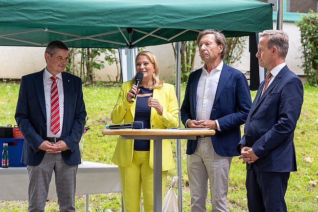 Bundesminister Polaschek lobte das reichhaltige Bildungsangebot und berichtete über seine Erfahrungen mit einem Gebäudetechnik-Projektteam, das für die Sanierung des Palais Starhemberg, Stammsitz des Bildungsministeriums, Verbesserungsvorschläge zur Sanierung eingebracht haben. Landesrätin Winkler bezeichnete die HTL Pinkafeld als Leuchtturmschule im burgenländischen Schulwesen, wo Innovation und Digitalisierung sich in einem breiten Bildungsangebot wiederfinden. Bürgermeister Kurt Maczek betonte die große Bedeutung der HTL für Pinkafeld selbst, aber auch als renommierte Ausbildungsstätte für die Region und darüber hinaus.