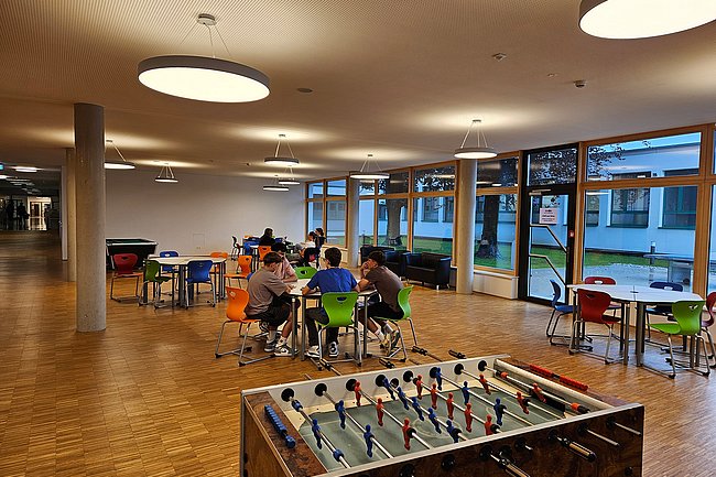 Die Planung für dieses Großprojekt mit einem Investitionsvolumen von 24 Millionen Euro dauerte mehrere Jahre. Die Umsetzung erfolgte dann in mehreren Phasen. So wurden im ersten Bauabschnitt das neue Eingangsgebäude und der Festsaal errichtet. Der Saal diente zuerst als Ausweichquartier während der Sanierung des Verwaltungstrakts. In der zweiten Phase wurden innerhalb eines halben Jahres die Verwaltungsräumlichkeiten wie Sekretariat, Direktion und einige Räumlichkeiten für die Lehrer saniert. In der letzten Bauphase wurde nach der Übernahme des Eingangsgebäudes im Februar 2023 der Verbindungstrakt zu den Gästehäusern generalsaniert, u.a. wurden neue Treppenhäuser errichtet. Der Abschluss der Arbeiten erfolgte im Februar 2024.