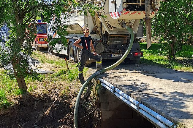 Am Montag, 17. Juni 2024, rückten 20 Schülerinnen und Schüler der zweiten, dritten und vierten Gebäudetechnik-Klassen mit Schwerpunkt „Brand- und Bevölkerungsschutz“ der HTL Pinkafeld gemeinsam mit HBI Prof. Lukas Tkauz und LM Prof. Michael Krutzler zu einem Katastrophenhilfseinsatz nach Unterschützen aus. Der Ort und die Bewohner waren besonders schwer vom katastrophalen Hochwasser am Samstag, 08. Juni 2024, betroffen. Nach einer kurzen Besprechung mit dem örtlichen Einsatzleiter begannen die Schülerinnen und Schüler mit den Hilfsarbeiten, es wurden Keller ausgepumpt und Häuser von Schlamm befreit.