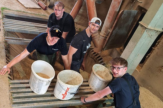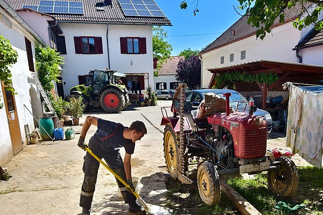 Ein besonderes Highlight war der Besuch von Andi Knoll und seinem Ö3-Radio-Team, die im Zuge der Livesendung „Knoll packt an“ vor Ort waren, zum Nachhören unter https://oe3.orf.at/player/20240617/3KPA/1718630094314. Mehrere Schüler*innen wurden live interviewt und halfen gemeinsam mit Andi Knoll. Die Dankbarkeit der Bewohner und Gastfreundlichkeit der örtlichen Feuerwehr Unterschützen beeindruckten die Schüler*innen sichtlich.