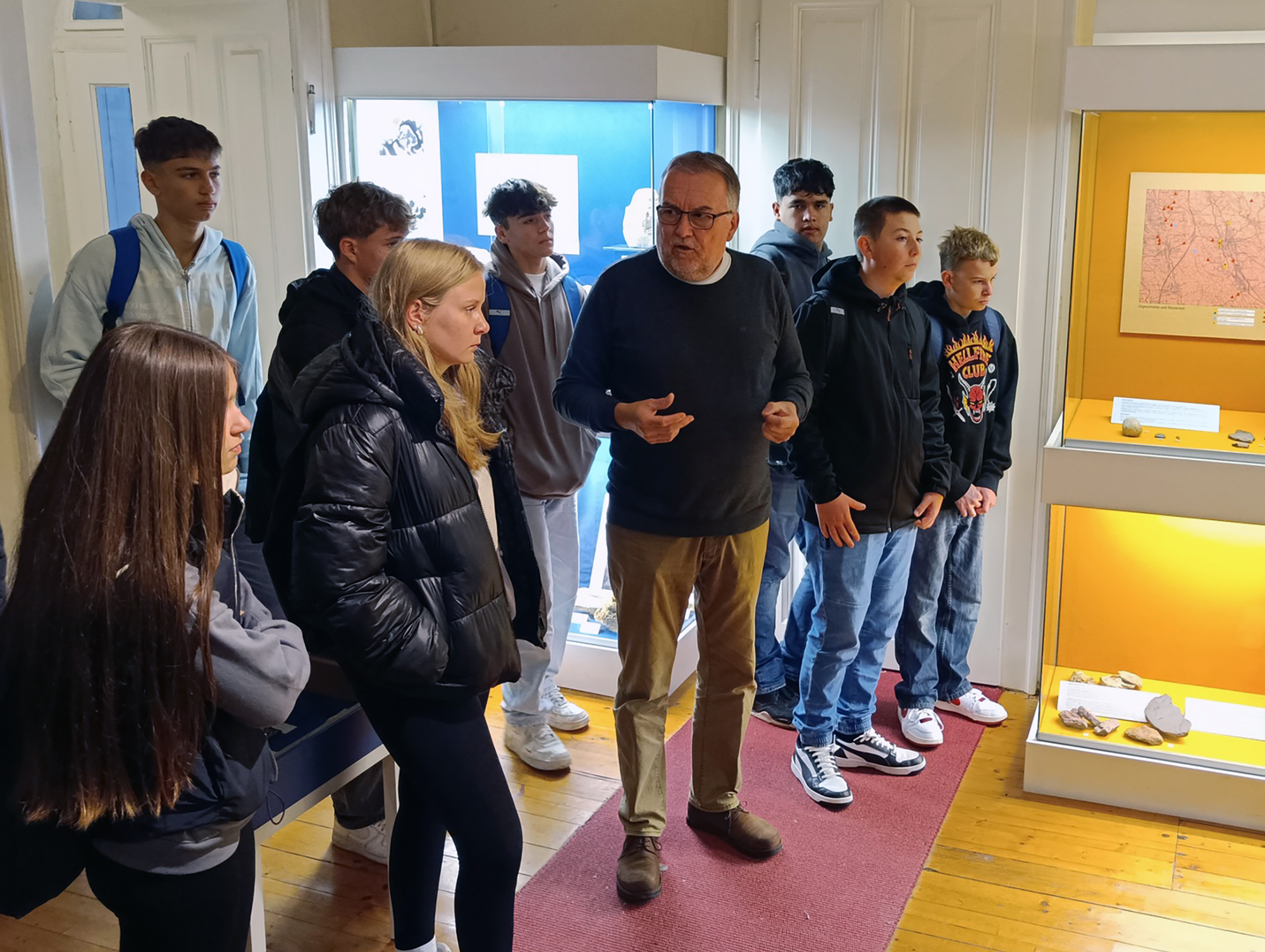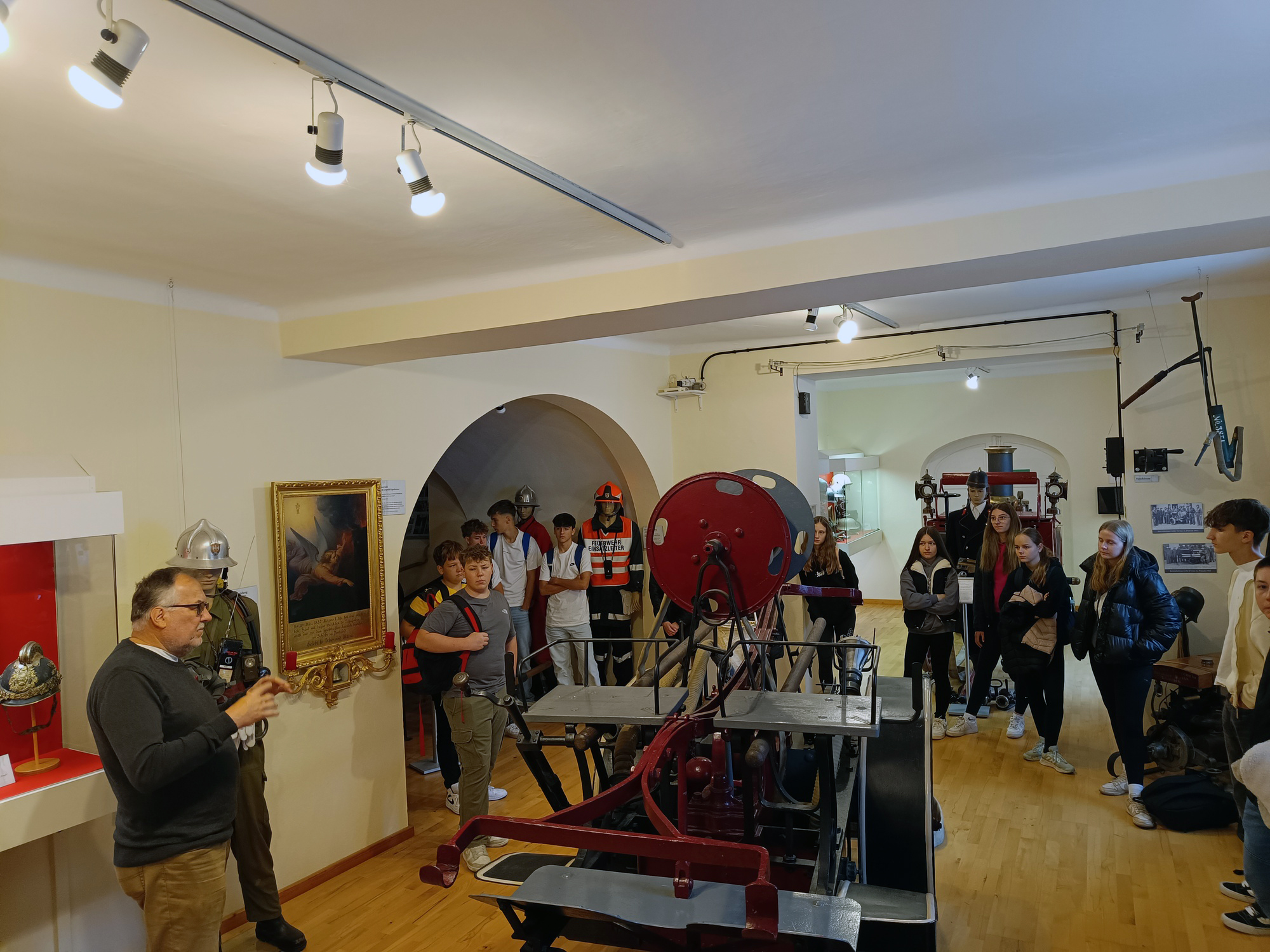 Im Rahmen des Wandertages einer ersten Bautechnik-Klasse führte der Weg der 1 CHBT mit KV Prof. Thomas Hochwarter zuerst zum Stadtmuseum Pinkafeld. Museumsleiter Prof. Rudi Köberl führte persönlich durch die Schauräume. Von der Keltenzeit über das Mittelalter bis zu den Tuchmachern von Pinkafeld wurden sehr viele interessante Informationen an die Schüler*innen über ihre Schulstadt weitergegeben. Wichtige Inputs kamen dabei auch zu Baukultur, Brandschutz und die Feuerwehr von Pinkafeld.