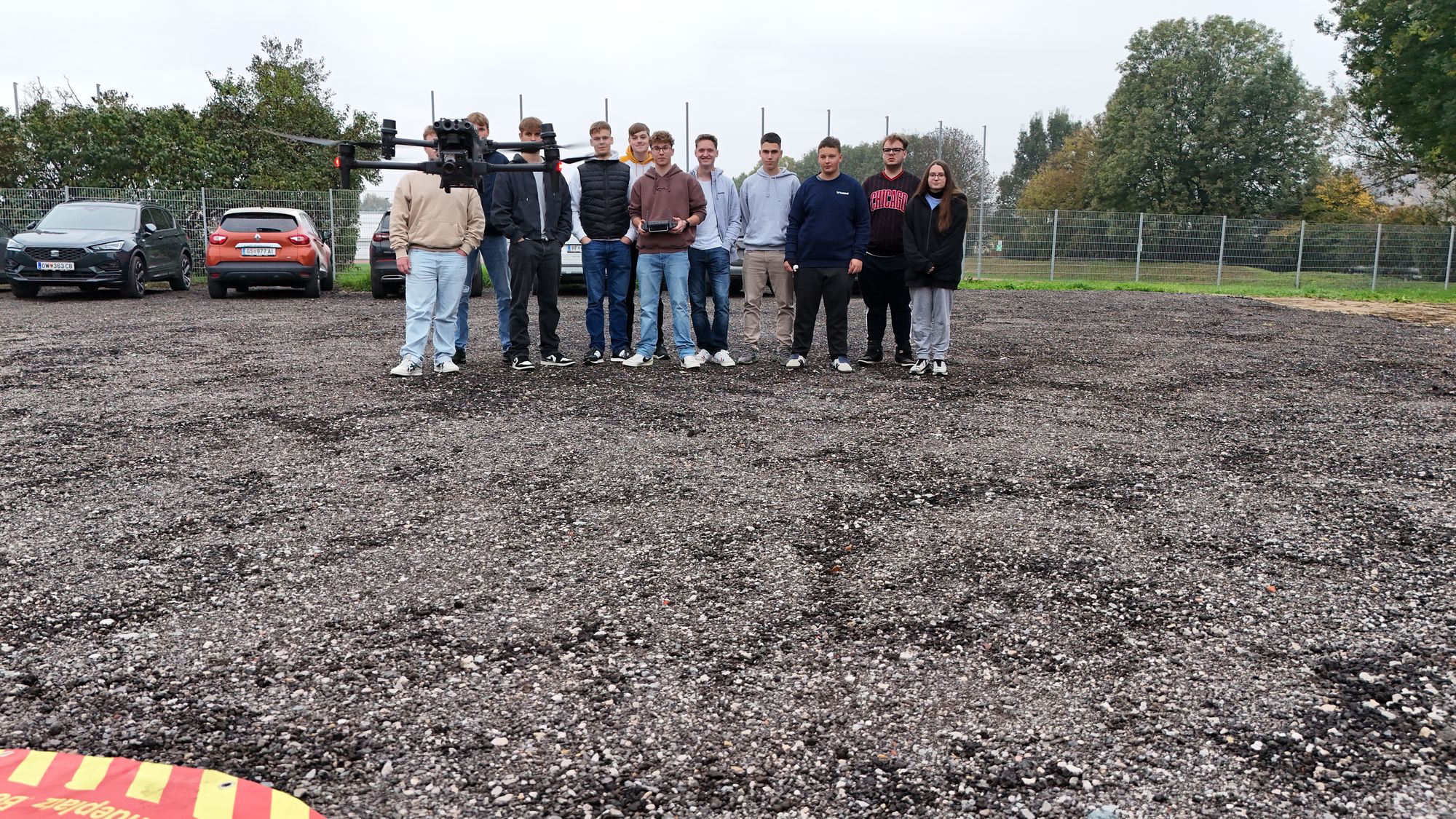 Ein besonders spannendes Einsatzgebiet für die Drohnentechnologie ist der Feuerwehrdienst. Die Schüler*innen der Zusatzausbildung „Brand- und Zivilschutz“ erweitern hierdurch ihr Kompetenzspektrum und generieren zusätzlichen Nutzen. Im Rahmen der Schulung führte Peter Verhas, ein Schüler und Mitglied der Drohnengruppe der Stadtfeuerwehr Pinkafeld, eine beeindruckende Vorführung mit der großen Einsatzdrohne durch. Unterstützt von Tobias Ulreich wurde die DJI M30T des Drohnenstützpunkts Pinkafeld präsentiert und die Leistungsfähigkeit der Technologie im Bereich von Luft- und Wärmebildern demonstriert.