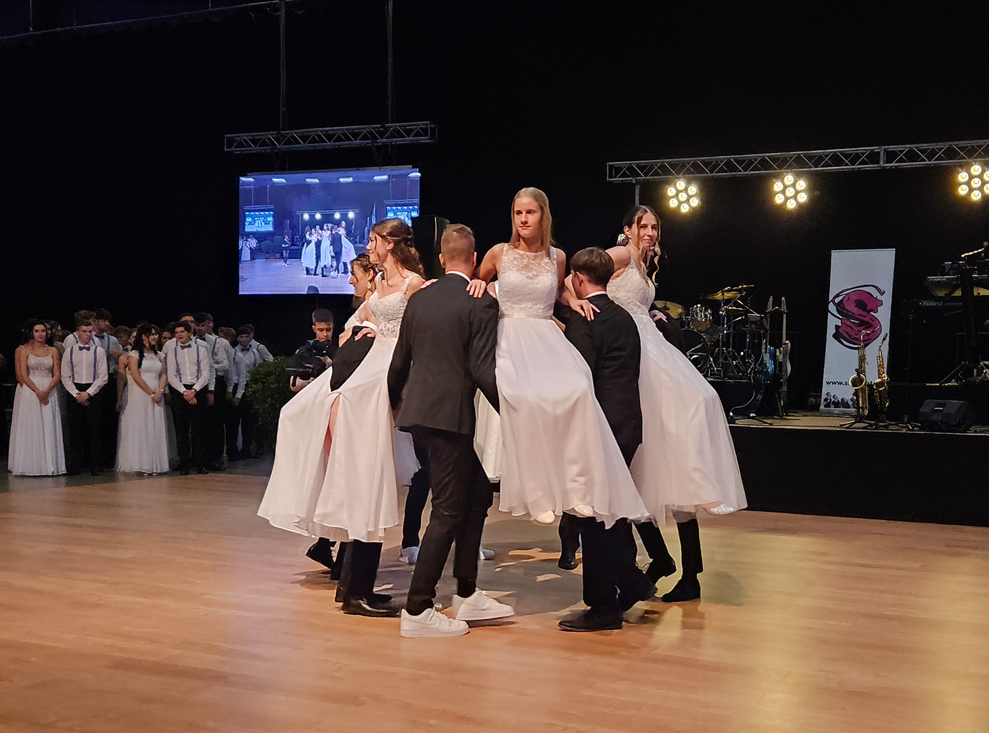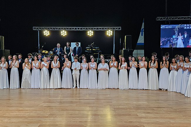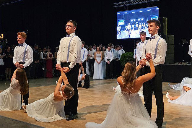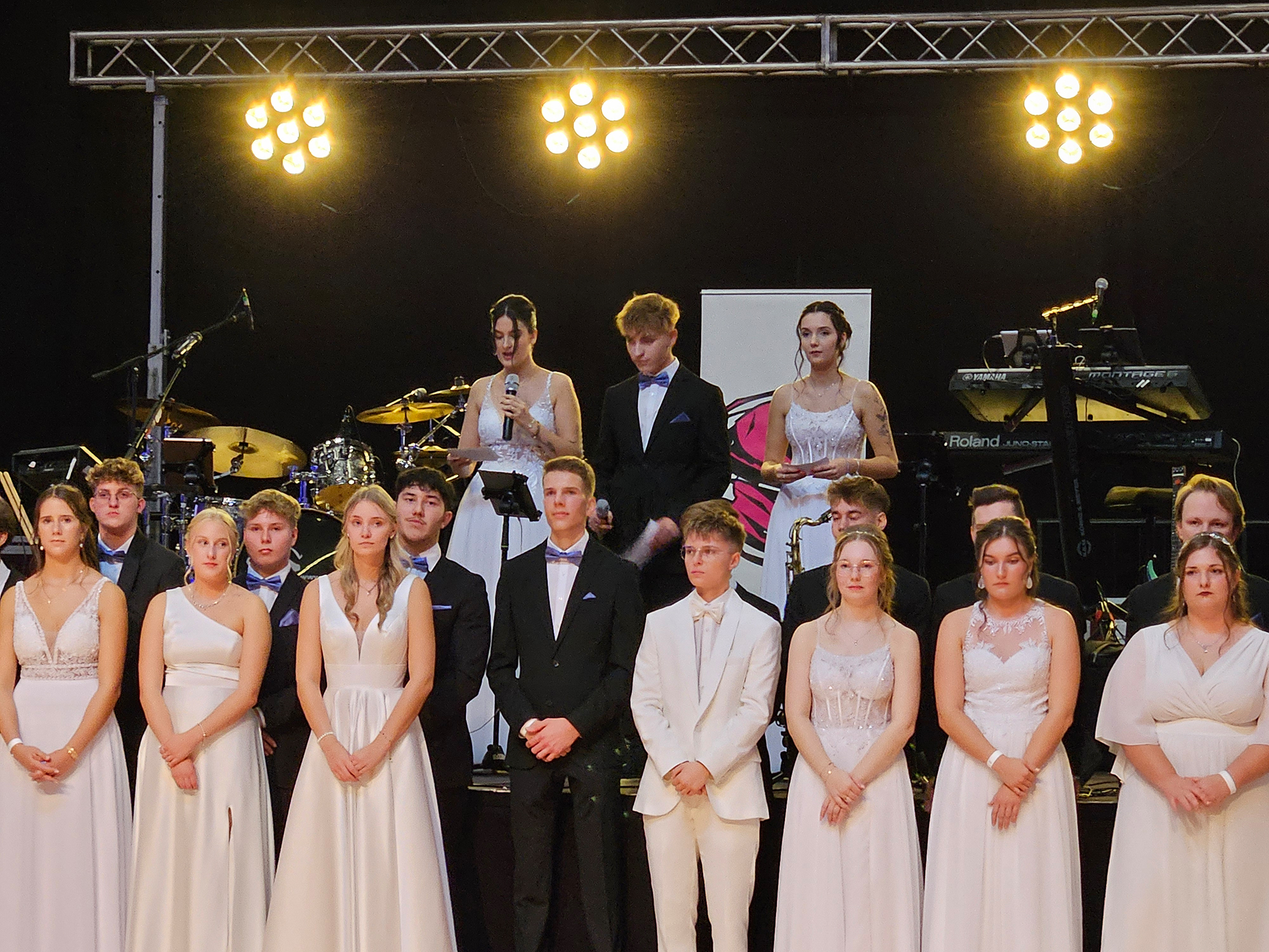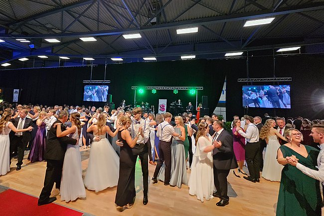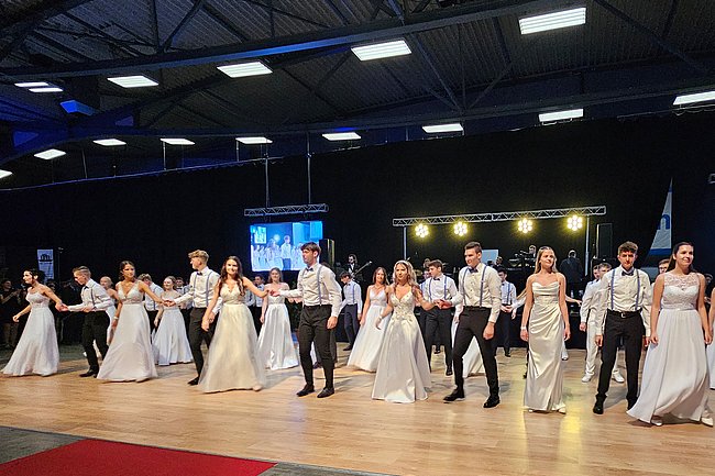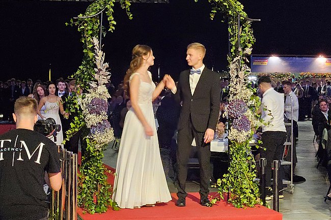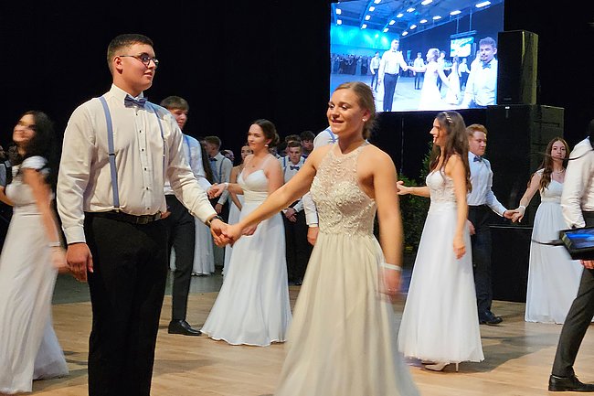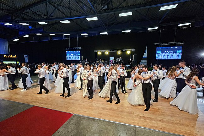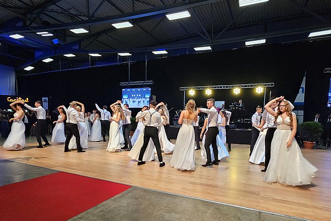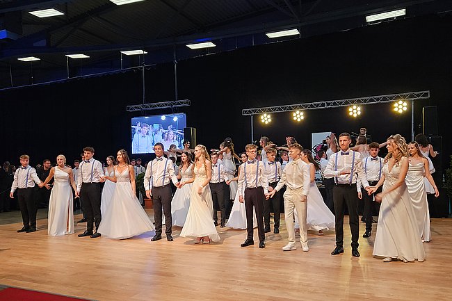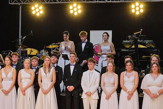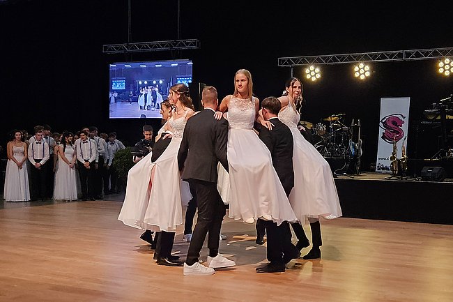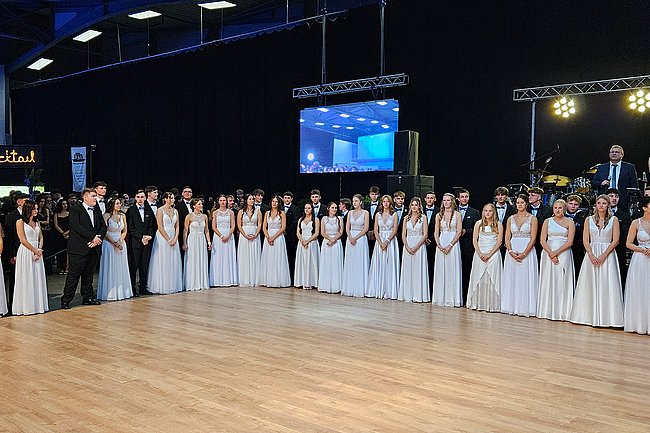 Nach dem Einzug der 63 zukünftigen HTL-Absolventinnen und -Absolventen, den die Klassenvorstände Prof. Eva-Maria Gangoly, Prof. Christoph Schermann und BL Dietmar Wanitsch ankündigten, wurde der festliche Abend mit einer mehrteiligen Polonaise eröffnet. Nach der Begrüßung durch Direktor Wilfried Lercher und Abteilungsvorständin Ulrike Hartler sorgte die Band „Skylight“ für ausgezeichnete Musik und gute Stimmung.