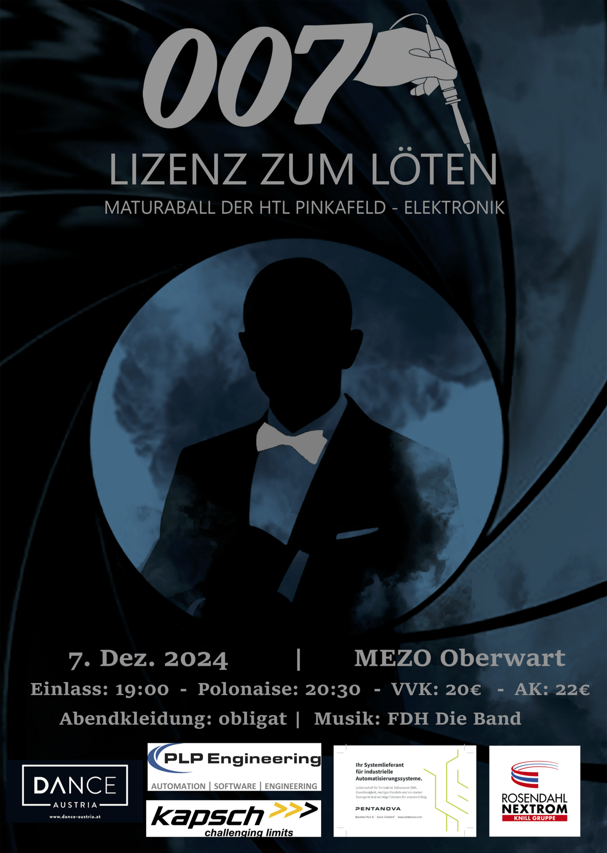 „Als die Maturaball-Vorbereitungen letztes Jahr begannen, war uns sofort klar, dass wir ein edles Thema mit Bezug auf unseren Schwerpunkt wollten. Und so war unser Ballthema geboren: 007 – Lizenz zum Löten – so soll unser Maturaball heißen“, erzählt Jonas Russold, Schüler des fünften Jahrgangs der Elektronik-Abteilung der HTL Pinkafeld.