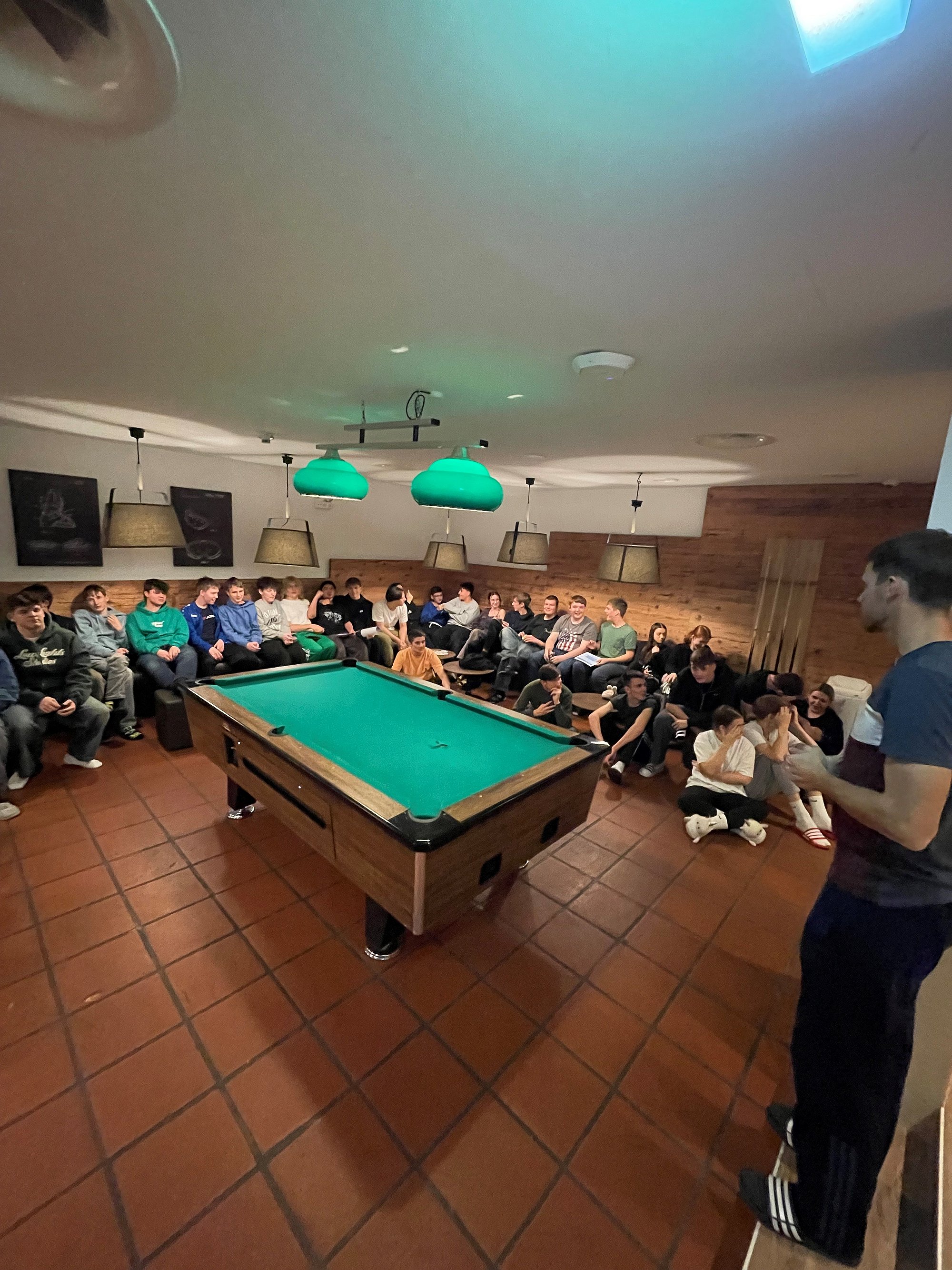 Die vier Skitage boten ideale Bedingungen, um das sonnige Wetter optimal zu nutzen. Abseits der Pisten wurden wichtige Themen wie Pistenregeln und Erste-Hilfe-Maßnahmen besprochen, um die Sicherheit der Teilnehmer zu gewährleisten. Am Abend sorgte ein abwechslungsreiches Rahmenprogramm für Unterhaltung: Es wurden spannende Turniere in Tischtennis, Schach, Vier Gewinnt und Schnapsen abgehalten, zudem konnten die Schülerinnen und Schüler bei verschiedenen Gesellschaftsspielen entspannen.
