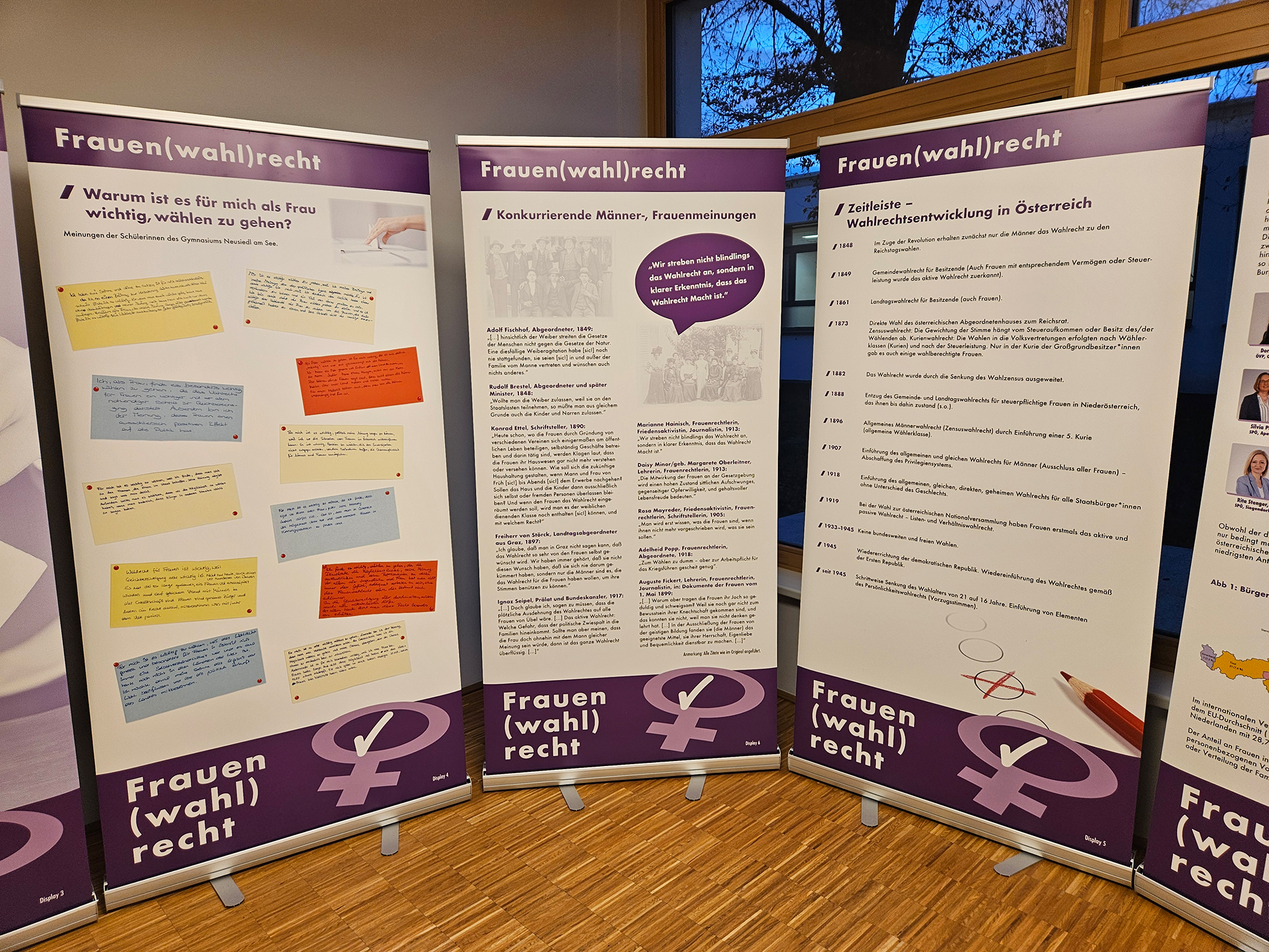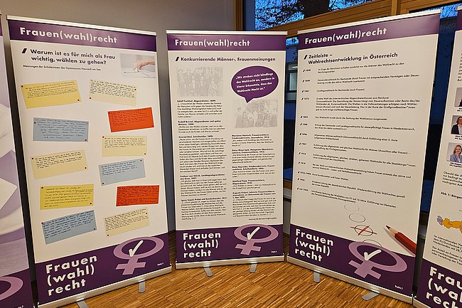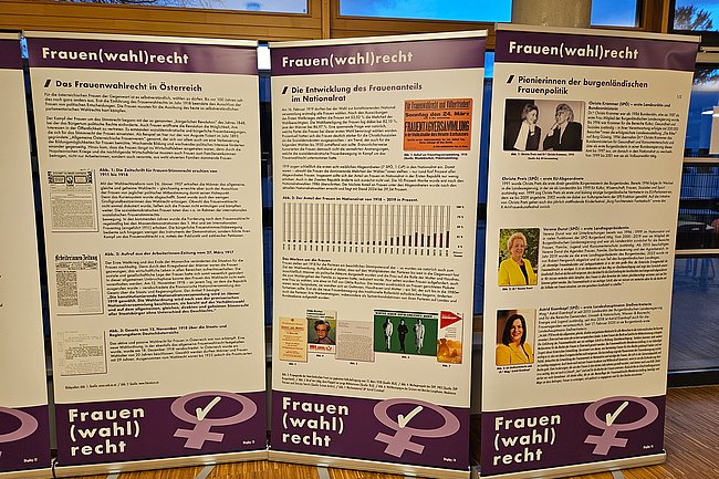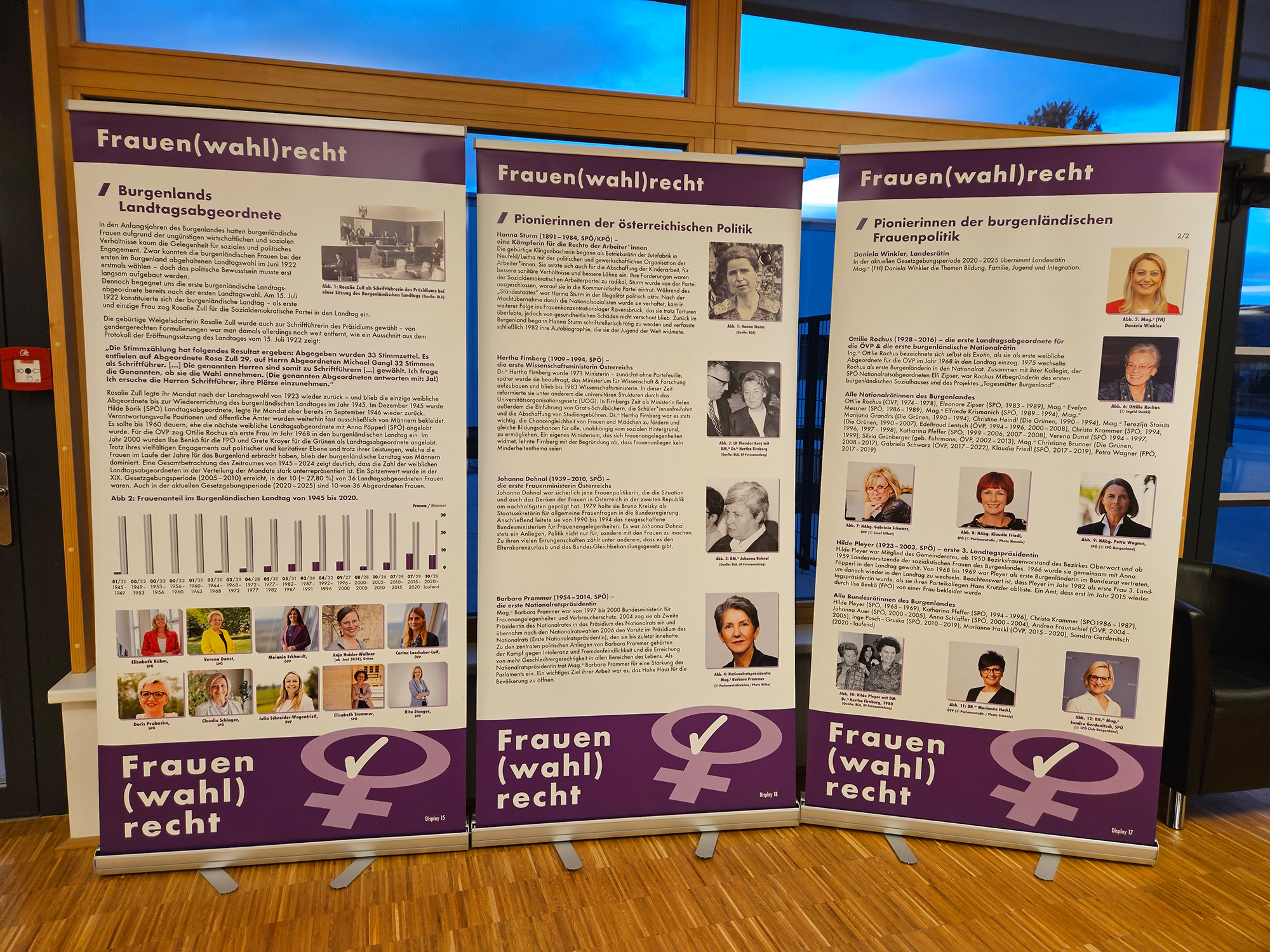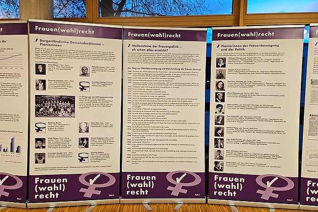 Dieses Jahr wurde die Wanderausstellung aktualisiert und neu eröffnet. Sie zeigt Pionierinnen der Frauenbewegung und Politik, beleuchtet die Entwicklung des Frauenanteils im Nationalrat und würdigt diejenigen Frauen, die sich in der Politik engagieren.