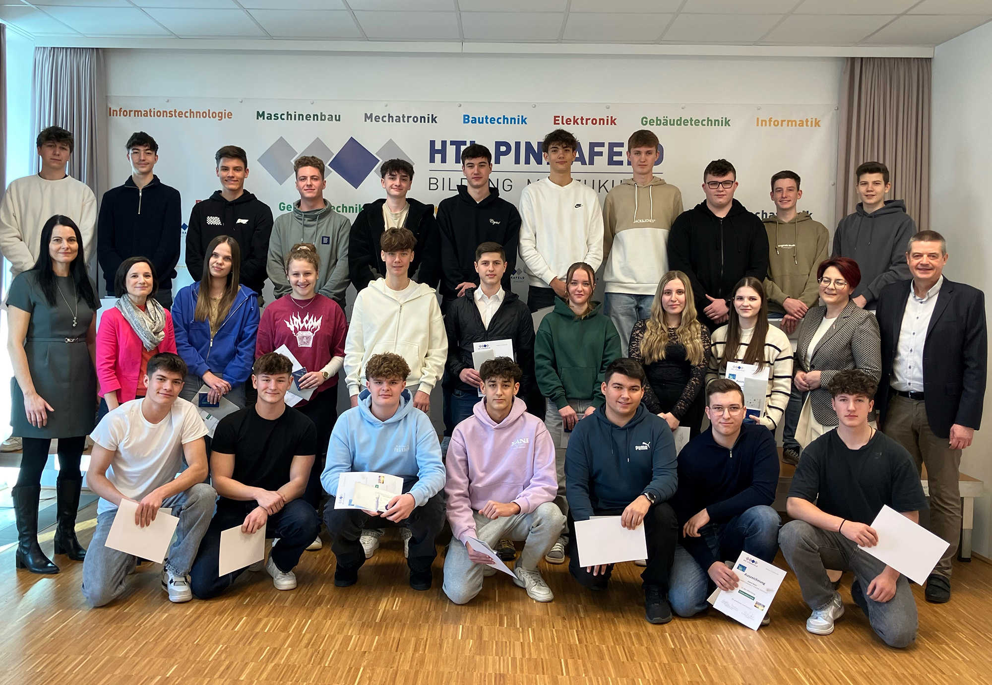 Sechs Schülerinnen und 22 Schüler der zweiten bis vierten Jahrgänge der Gebäudetechnik-Abteilung der HTL Pinkafeld erhielten am 18. Dezember 2024 von Abteilungsvorständin Barbara Rehling und Direktor Wilfried Lercher im Beisein von Vertreterinnen der Wirtschaftskammer und der Industriellenvereinigung Lob für ihre ausgezeichneten schulischen Leistungen und eine Anerkennung in Form eines Einkaufsgutscheins.
