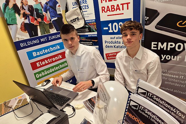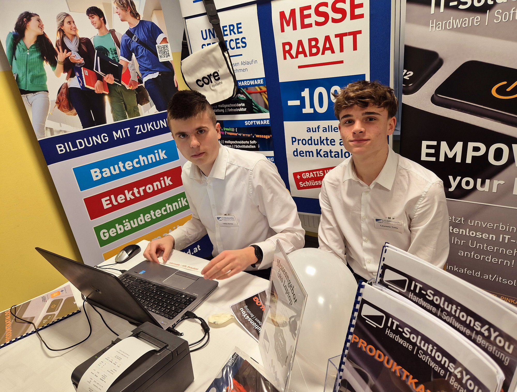 Ende Jänner fand die 7. burgenländische Übungsfirmenmesse in der Bauernmühle in Mattersburg statt. Die Übungsfirma der HTL Pinkafeld, IT-Solutions4You GmbH, war eine der 29 teilnehmenden Firmen. HAK/HAS Mattersburg Direktor Andreas Hackstock begrüßte die Ehrengäste aus Wirtschaft und Politik und auch die Begleitlehrerinnen und -lehrer sowie Mitarbeiterinnen und Mitarbeiter der landesweiten Übungsfirmen.